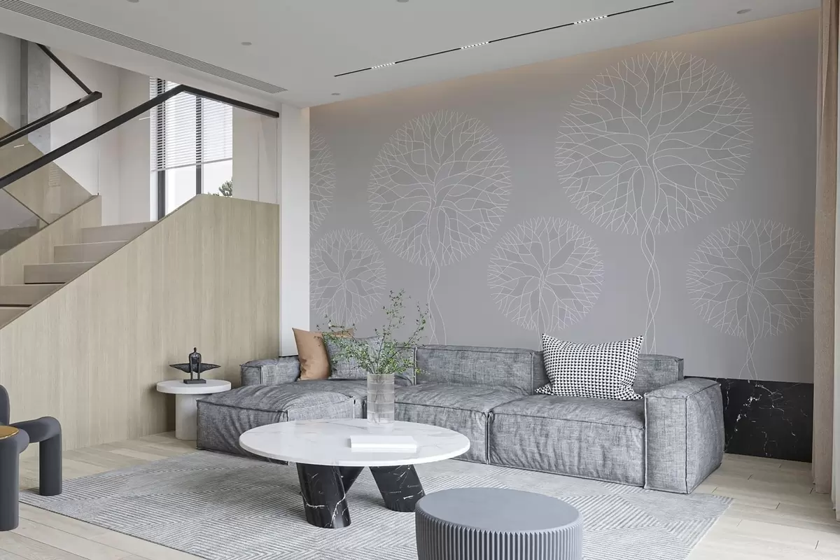 Stenske poslikave Fantazijska linearna drevesa z bujnimi krošnjami v svetlo sivih odtenkih Št. w05213v4