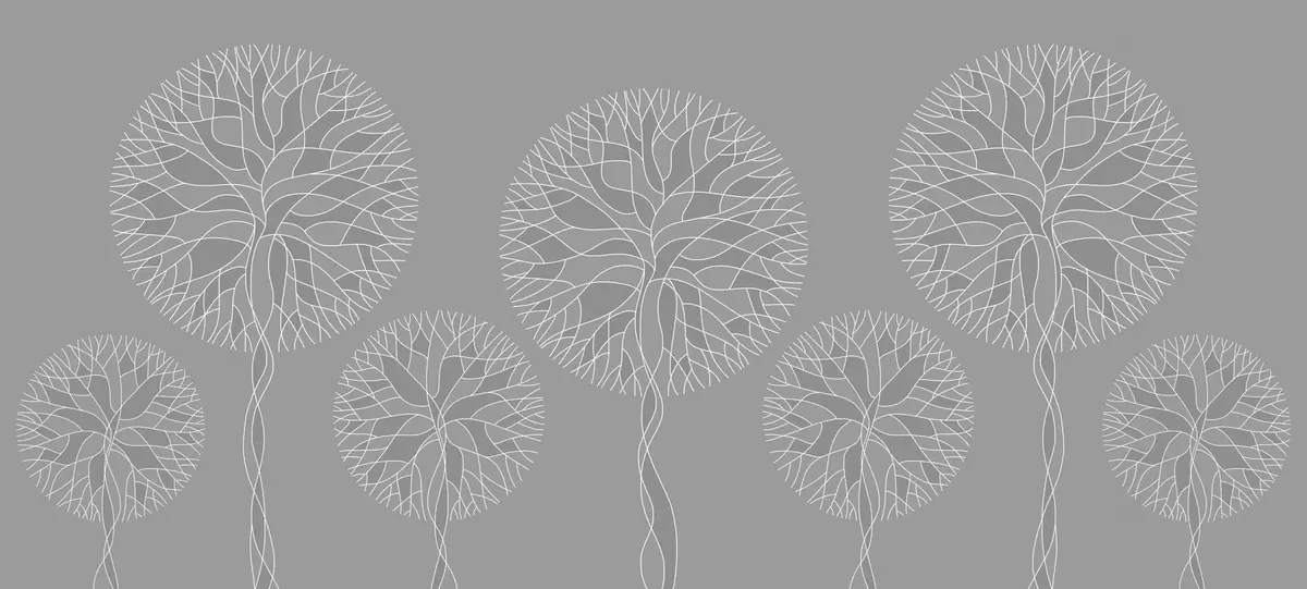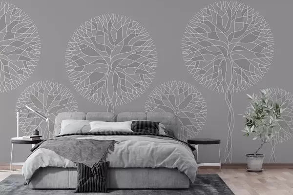 Stenske poslikave Fantazijska linearna drevesa z bujnimi krošnjami v srednje sivih odtenkih Št. w05213v5