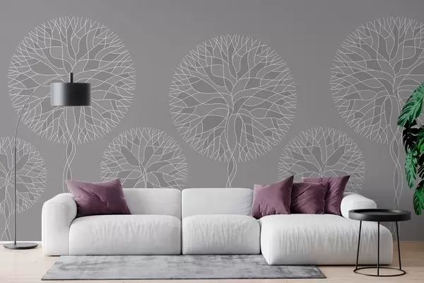 Stenske poslikave Fantazijska linearna drevesa z bujnimi krošnjami v srednje sivih odtenkih Št. w05213v5