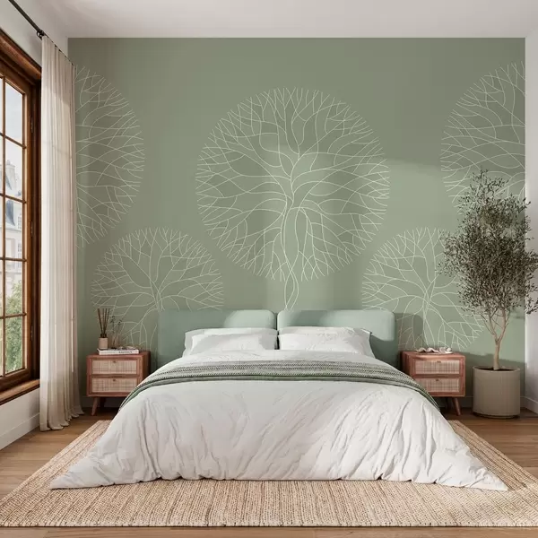 Stenske poslikave Fantazijska linearna drevesa z bujnimi krošnjami v svetlo zelenih odtenkih Št. w05213v6