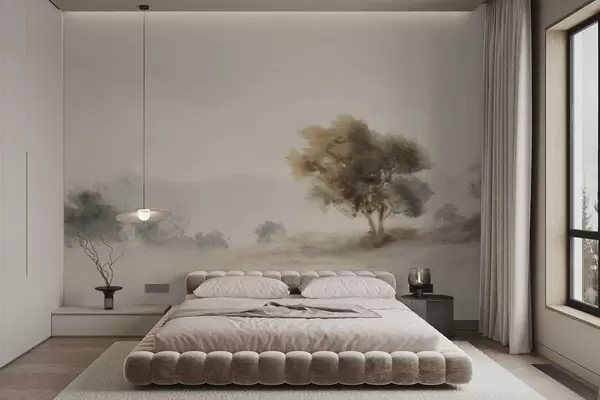 Stenske poslikave Minimalistična pokrajina z osamljenim drevesom v megli Št. w05223
