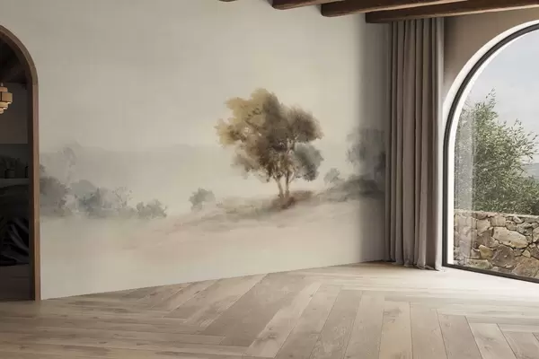 Stenske poslikave Minimalistična pokrajina z osamljenim drevesom v megli Št. w05223