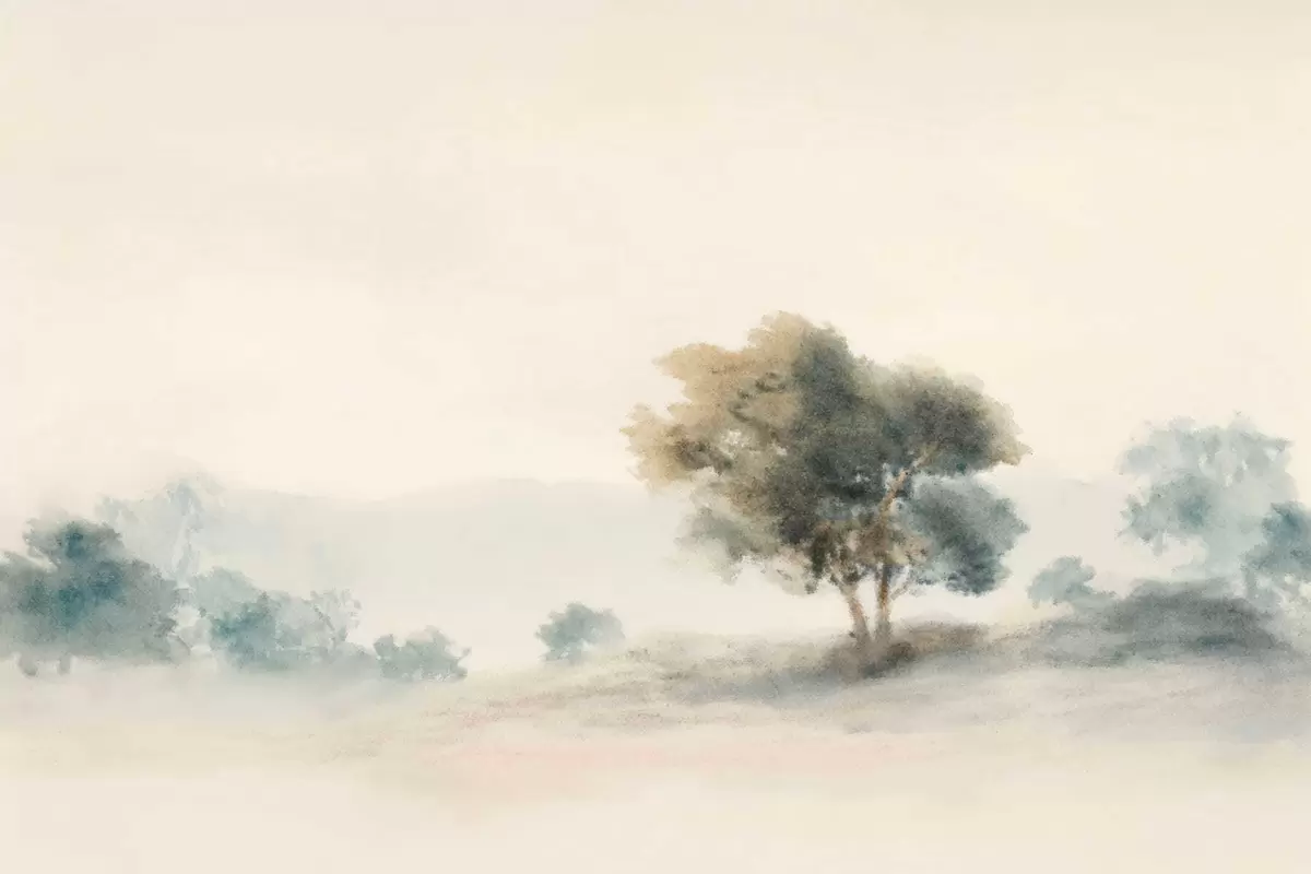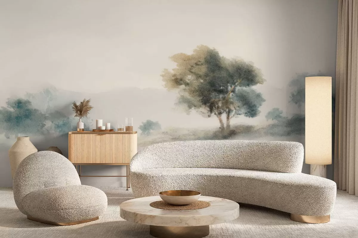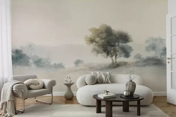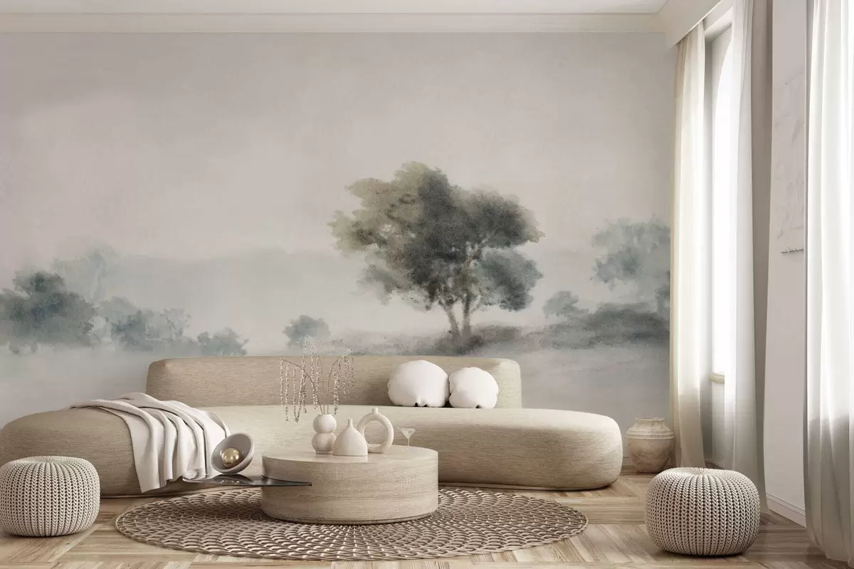 Stenske poslikave Mirna pokrajina z drevesom in mehkimi zamegljenimi oblikami Št. w05223v1