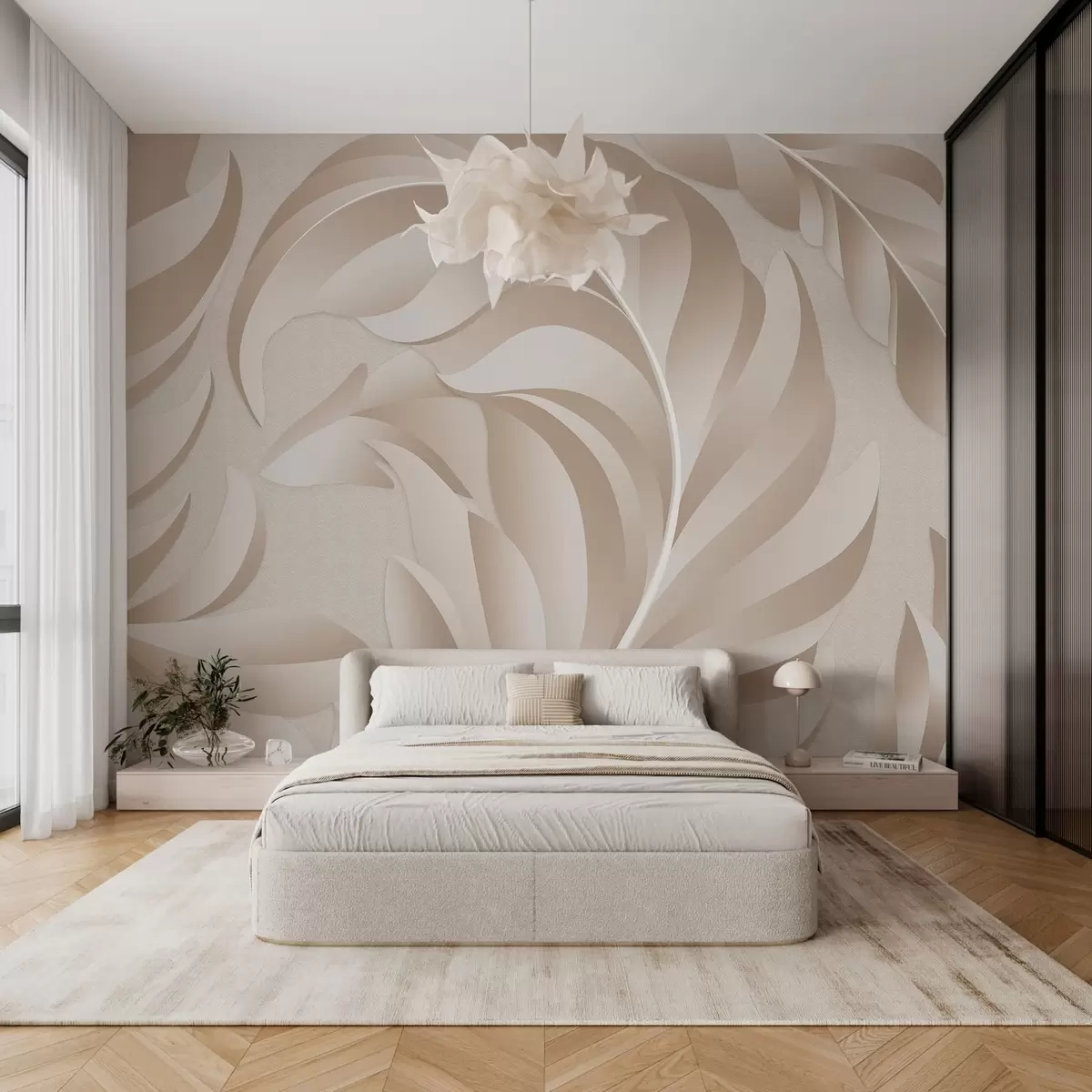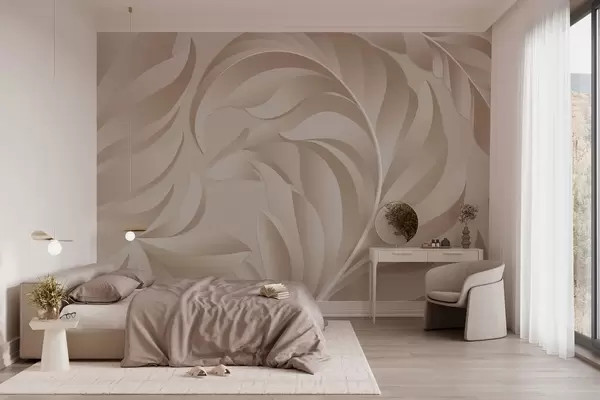 Stenske poslikave velika teksturirana peresa v bež in pudrastih odtenkih Št. w05231