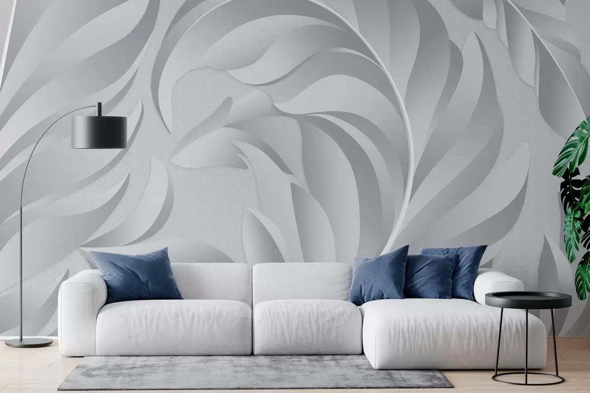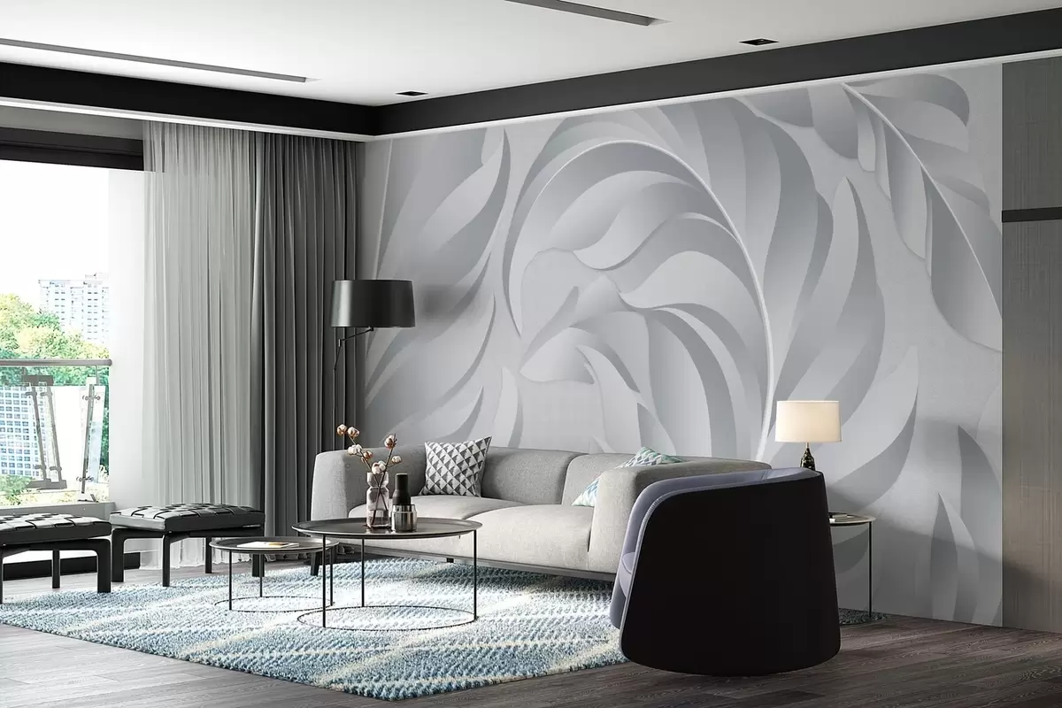Stenske poslikave velika teksturirana peresa v sivih odtenkih Št. w05231v3