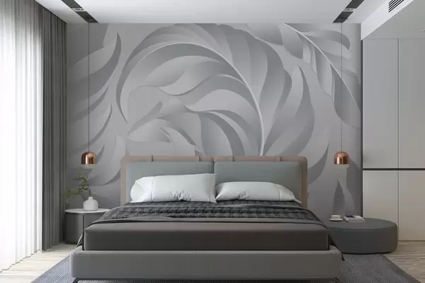 Stenske poslikave velika teksturirana peresa v sivih odtenkih Št. w05231v3