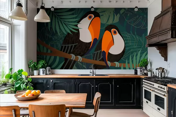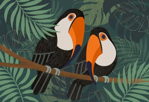 Stenske poslikave par tukanov na veji v afriškem slogu Št. w05239