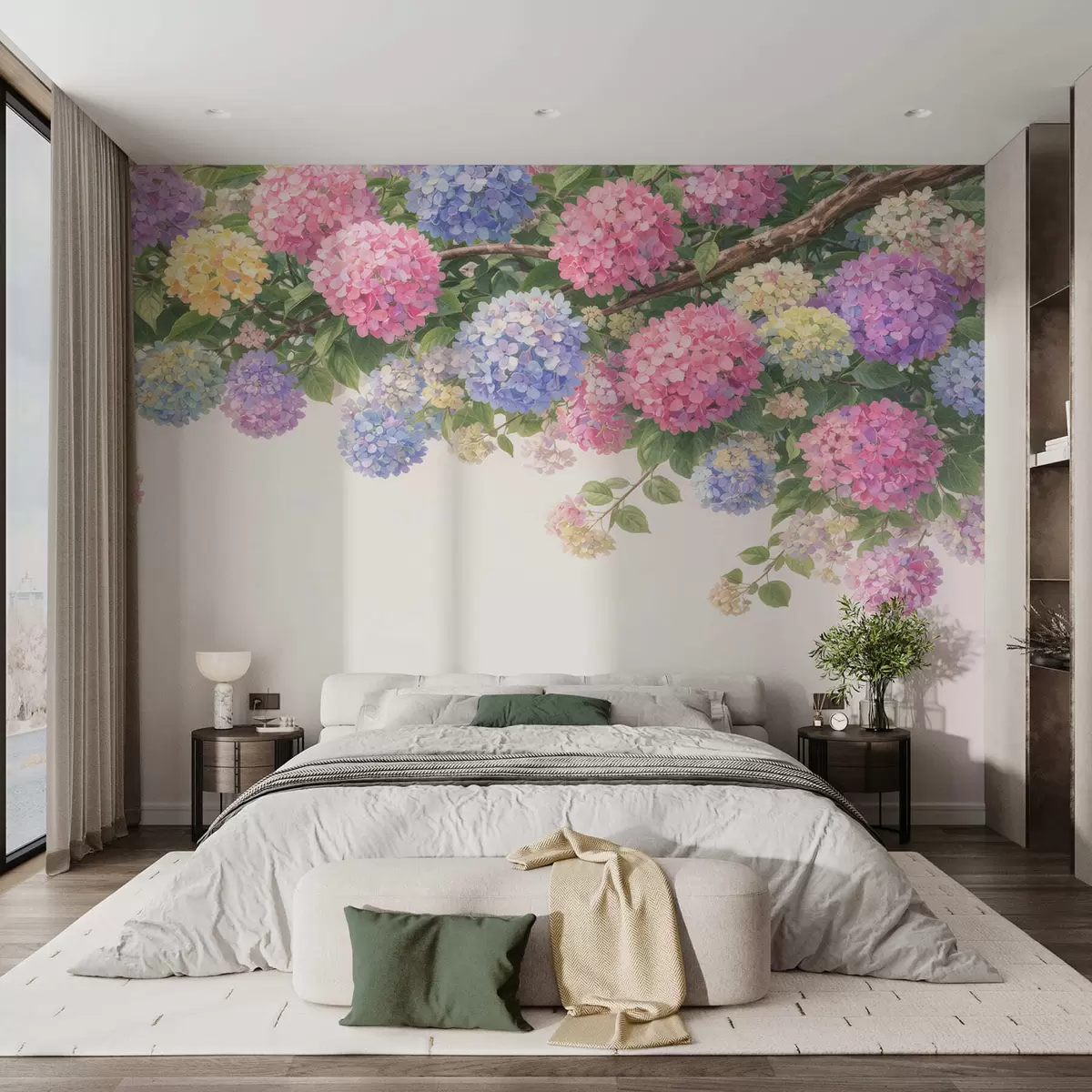 Stenske poslikave Naslikane hortenzije visijo navzdol Št. w05250