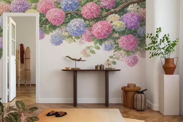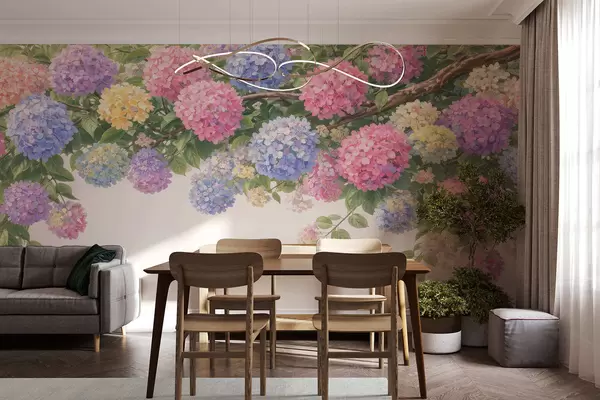 stenske poslikave Naslikane hortenzije visijo navzdol w05250