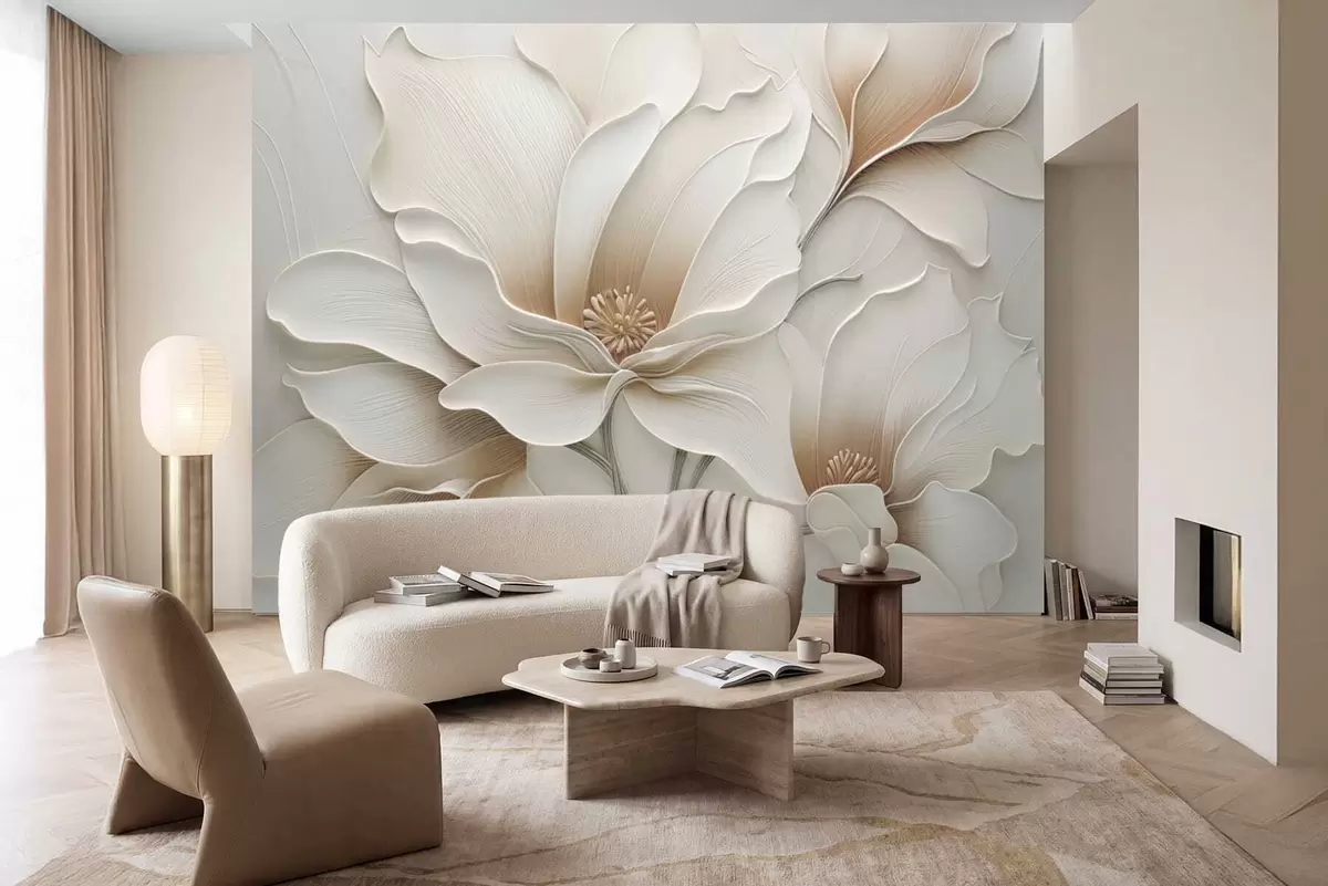 Stenske poslikave Reliefni bež cvet v bližini Št. w05269