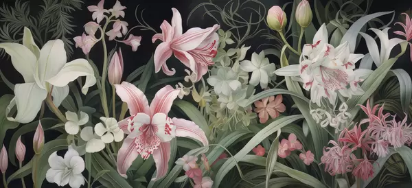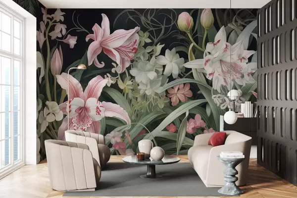 Stenske poslikave Fantastične cvetlice na temnem ozadju Št. w05278