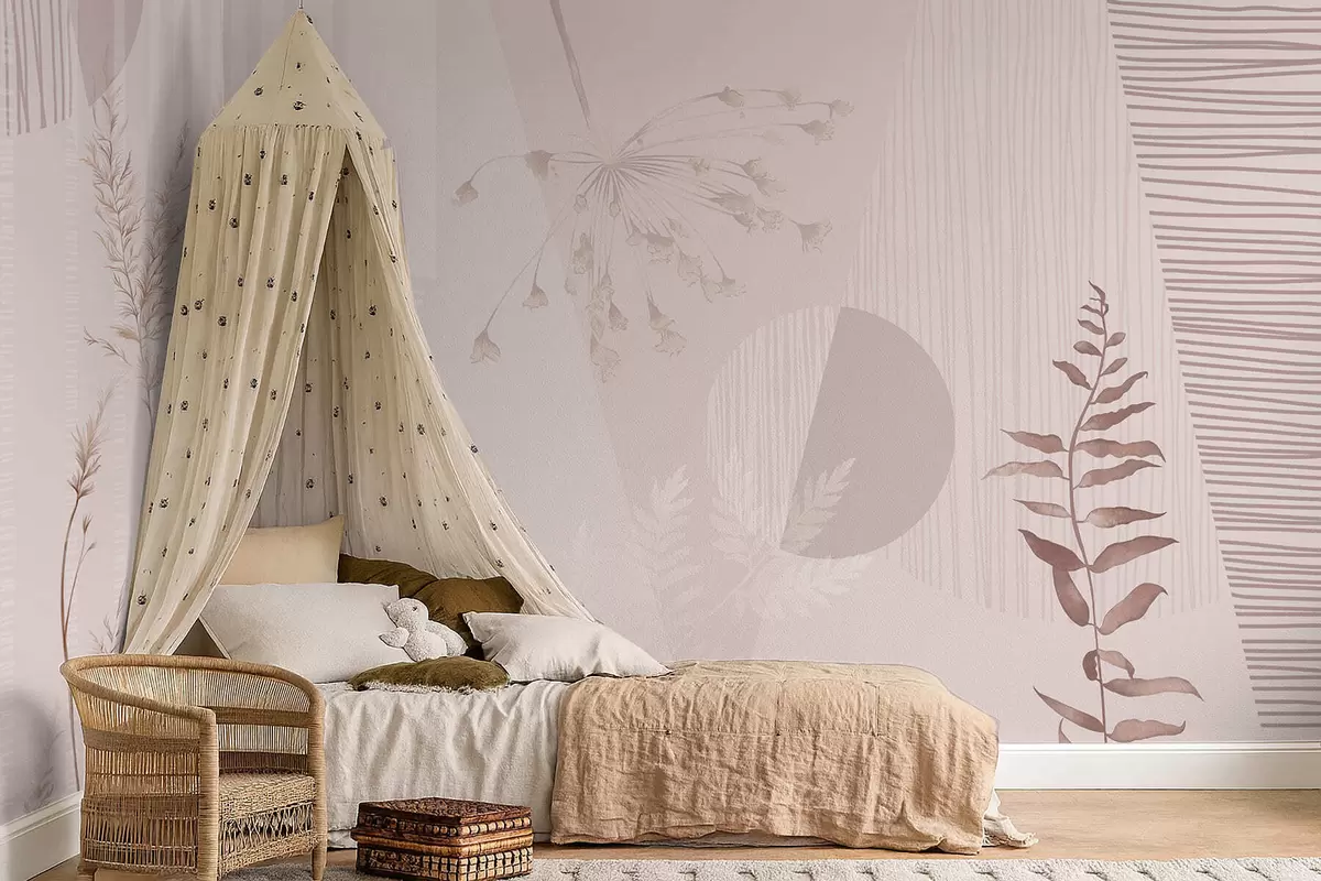 Stenske poslikave Abstraktne trave v nežnih rožnatih odtenkih Št. w05318v1