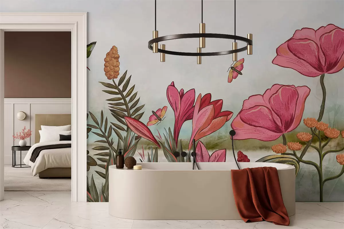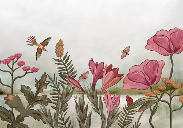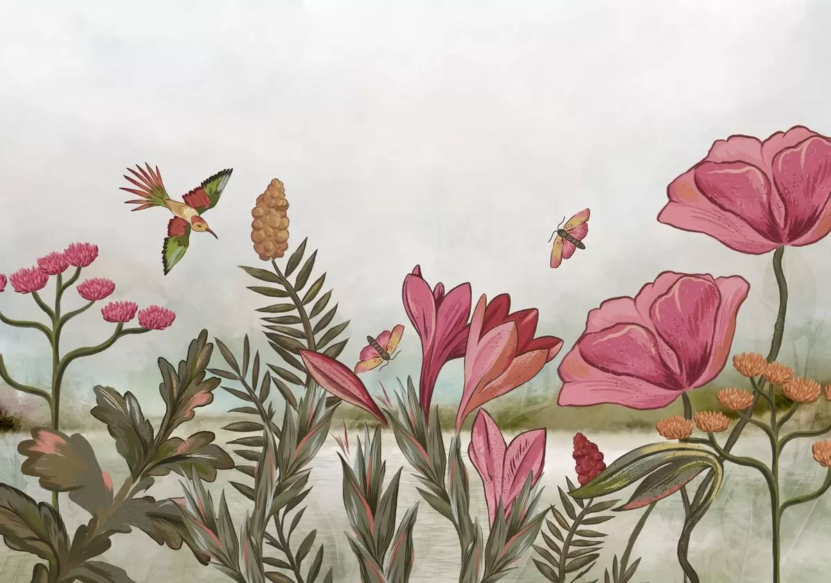 Stenske poslikave Svetle cvetlice s pticami in metulji Št. w05321