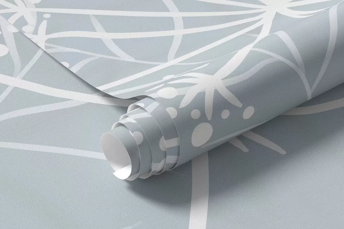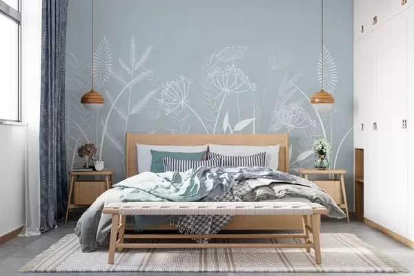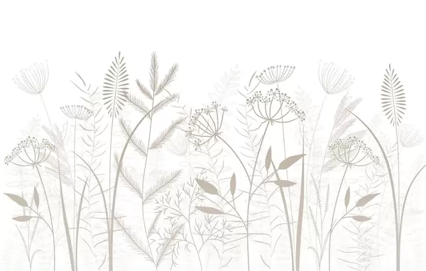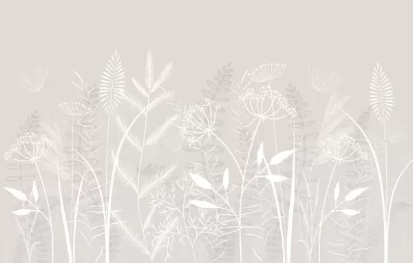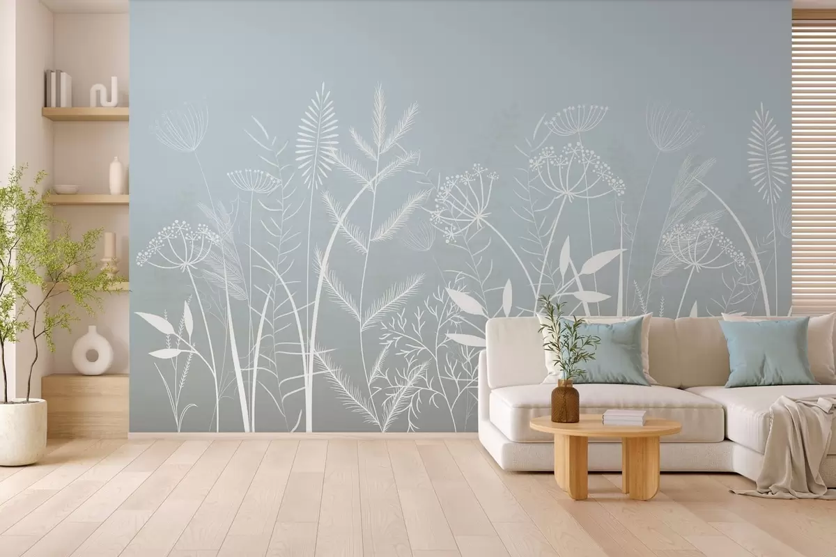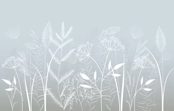 Stenske poslikave nežne, ročno naslikane divje trave in cvetlice na sivo-modrem ozadju Št. w05383