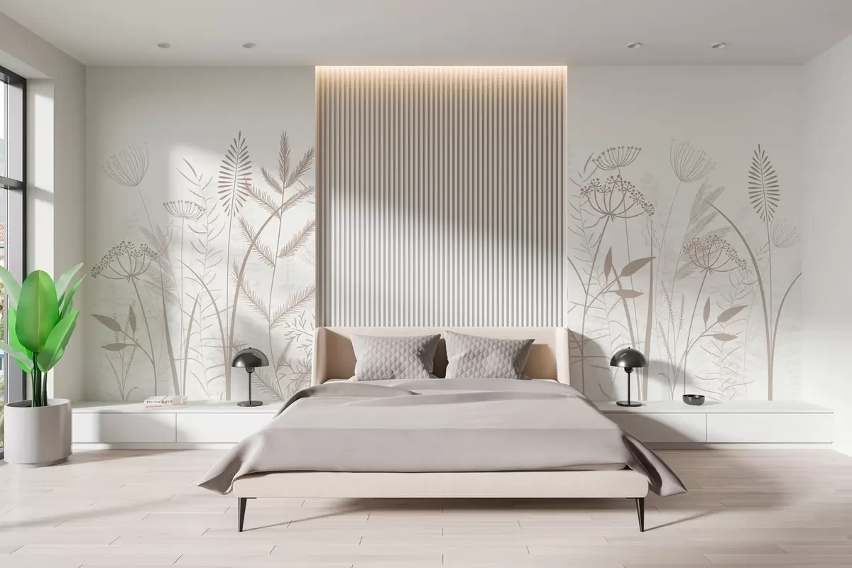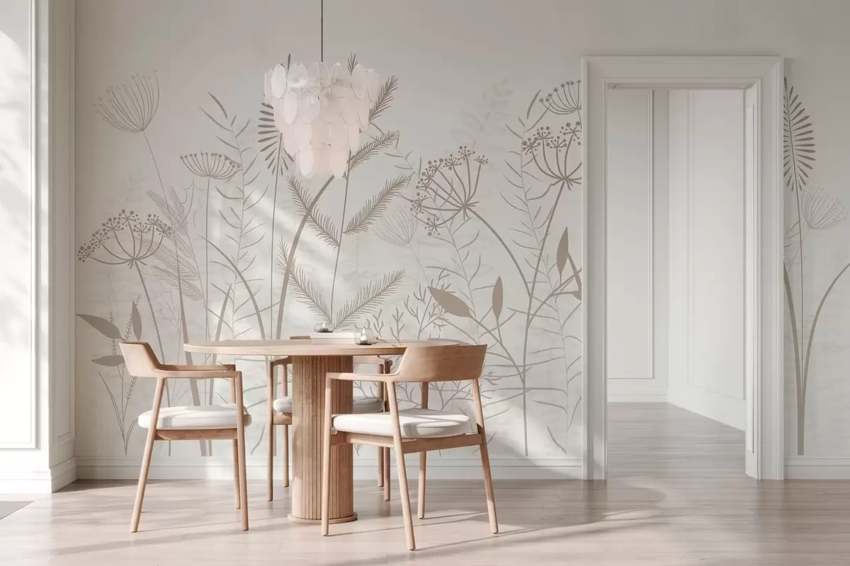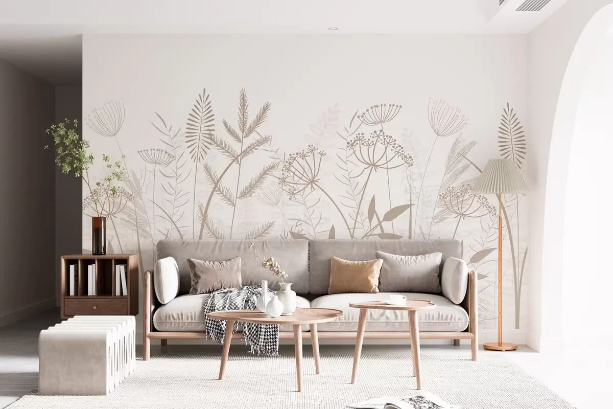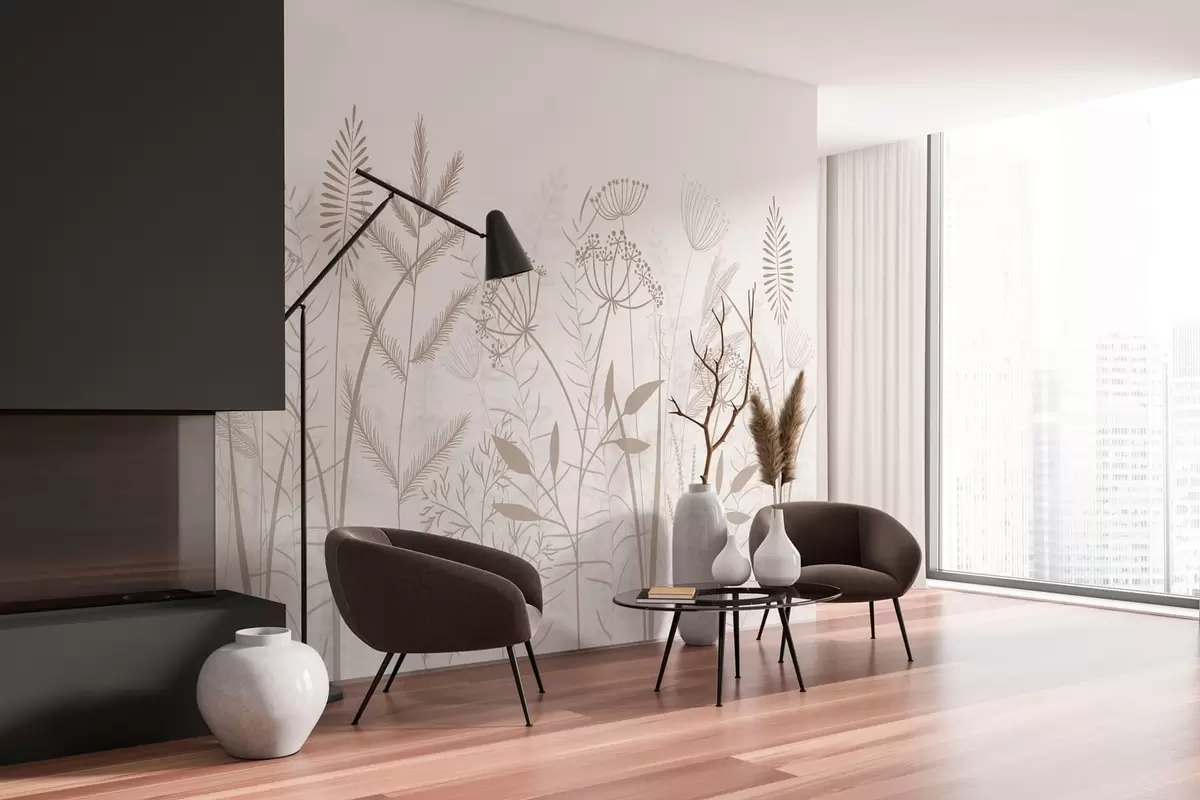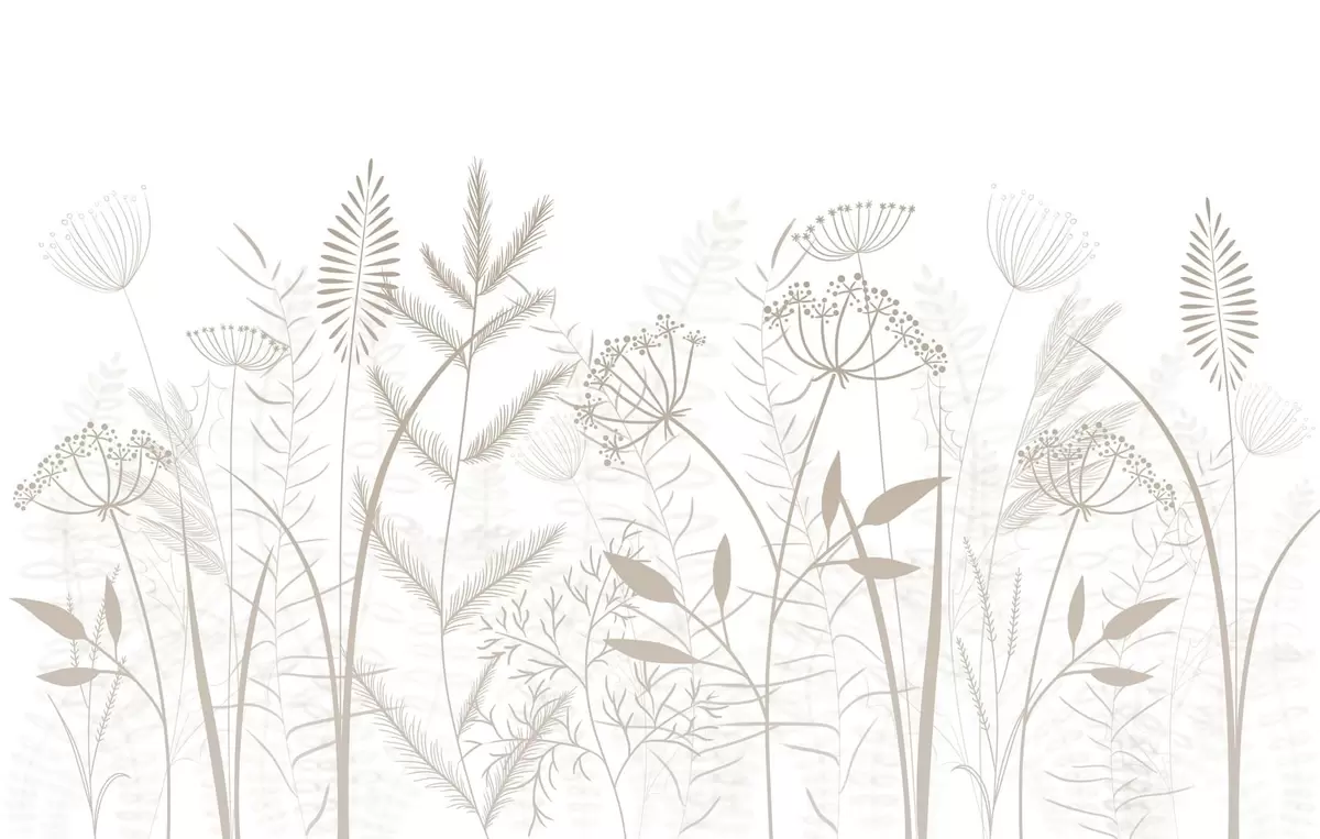 Stenske poslikave nežne, ročno naslikane divje trave in cvetje na belem ozadju Št. w05383v2