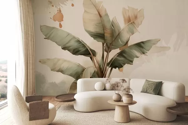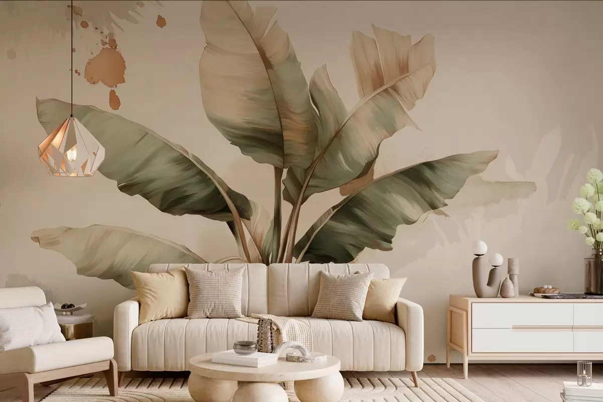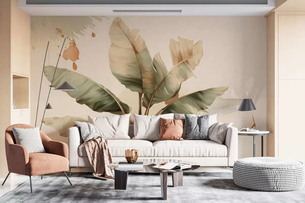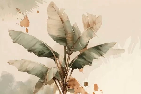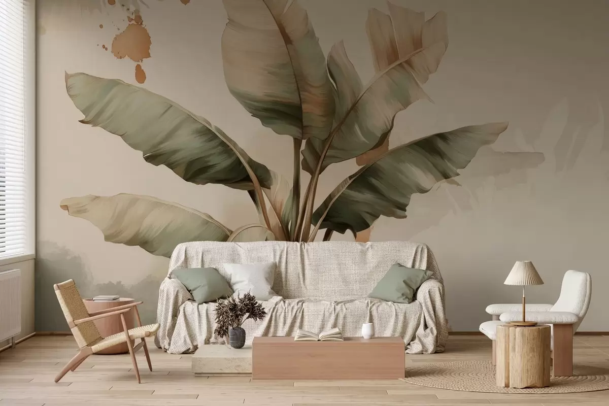 Stenske poslikave velika, slikovita kopica bananinih listov z barvnimi madeži v retro slogu Št. w05384