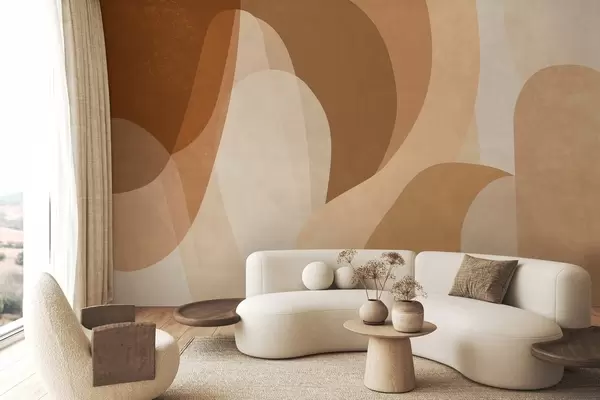 Stenske poslikave abstraktne krivine v rjavih, bež in kostanjevih odtenkih Št. w05387