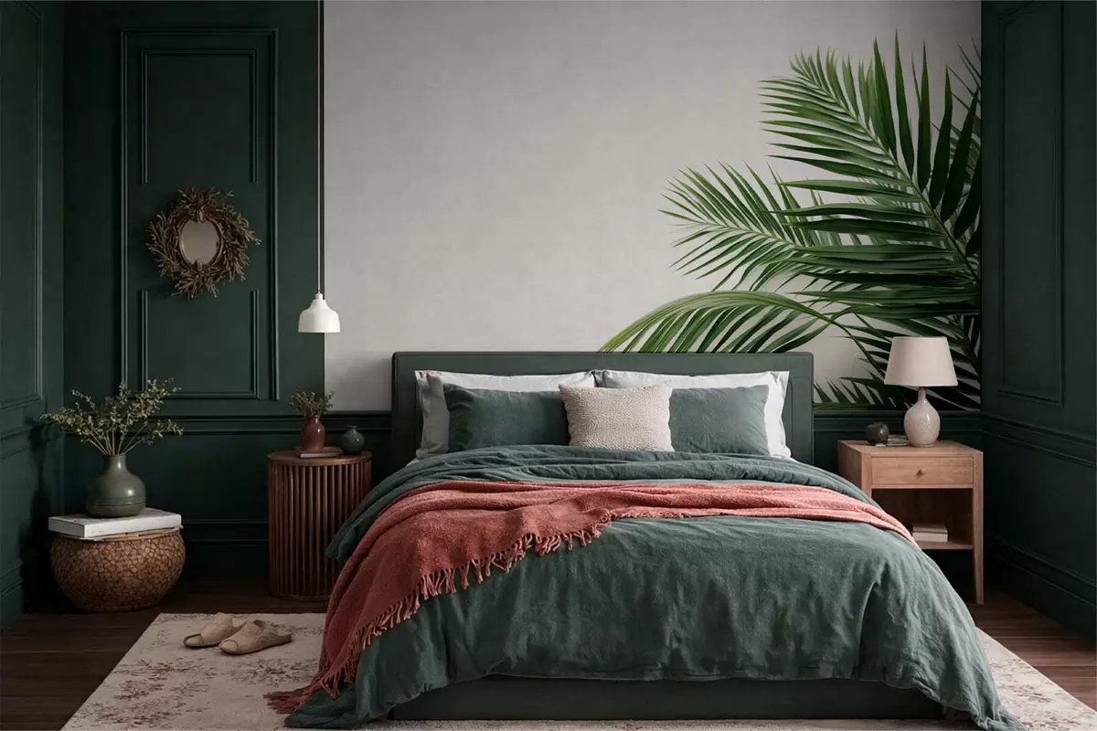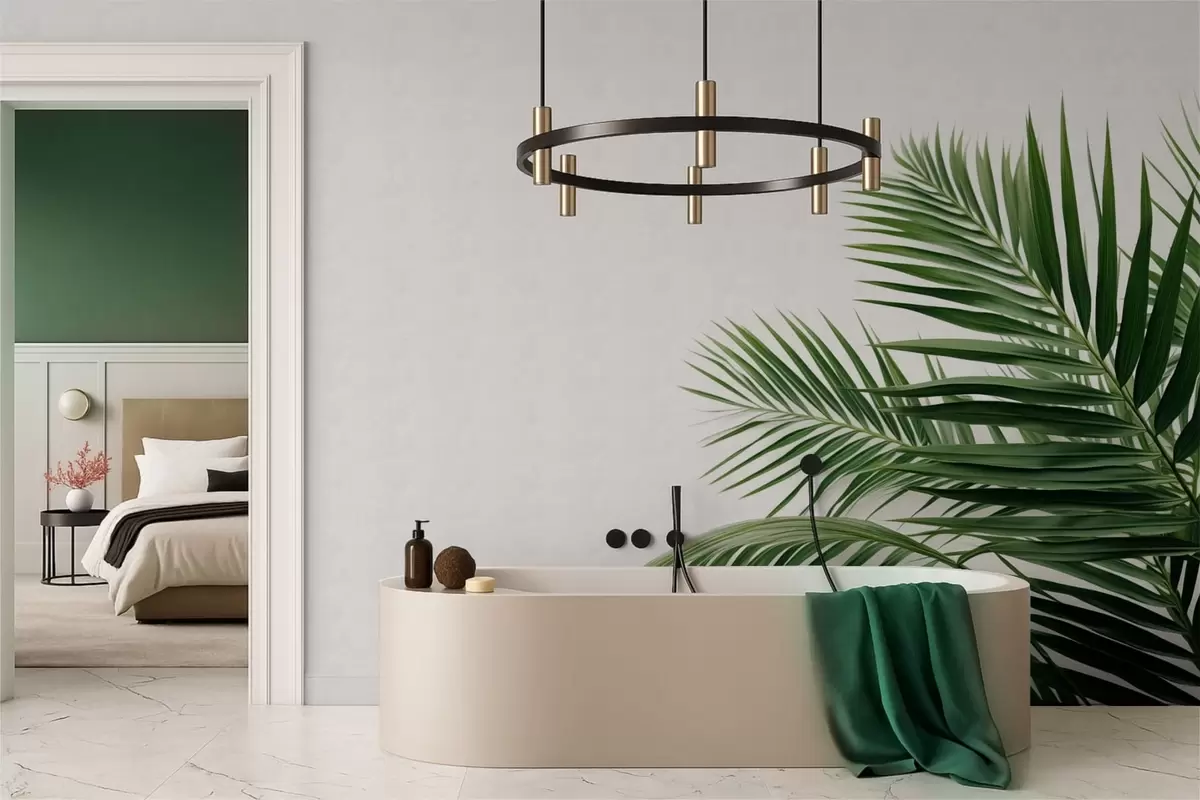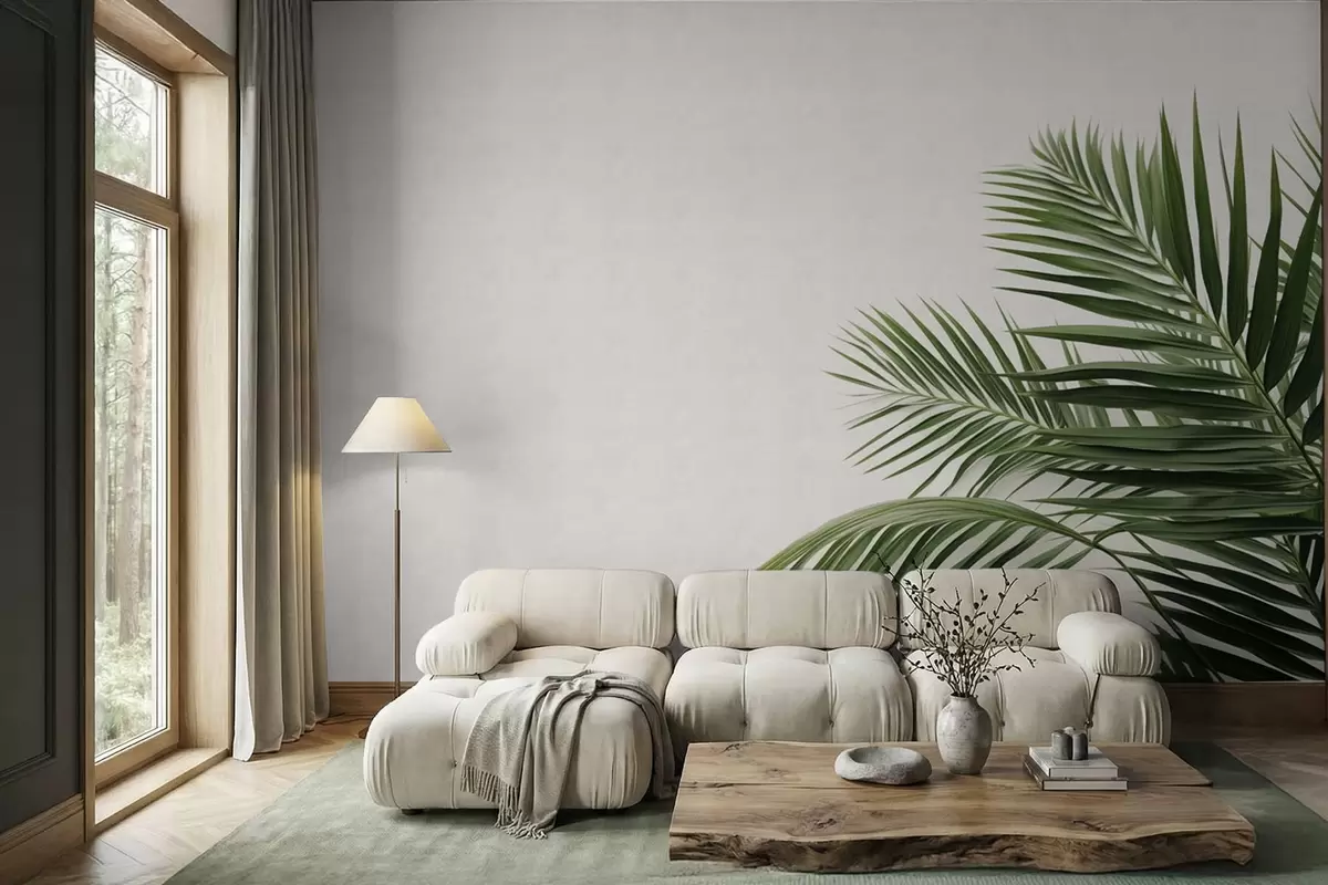 Stenske poslikave Zelena palmova lista na svetlem ozadju Št. w05391