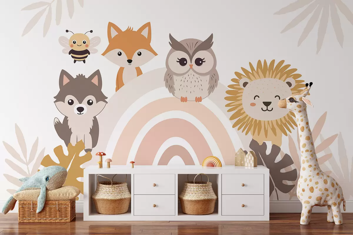 Stenske poslikave Simpatične živali ob mavrici Št. w05399