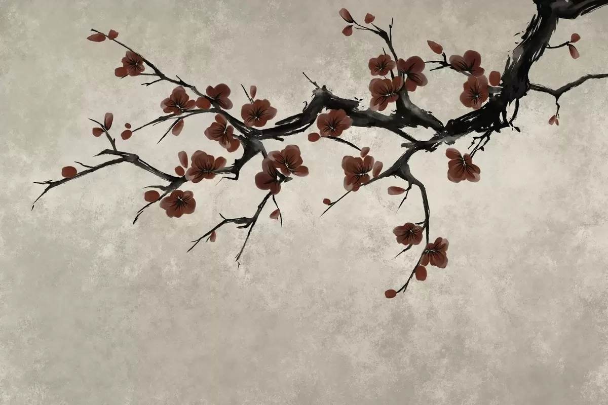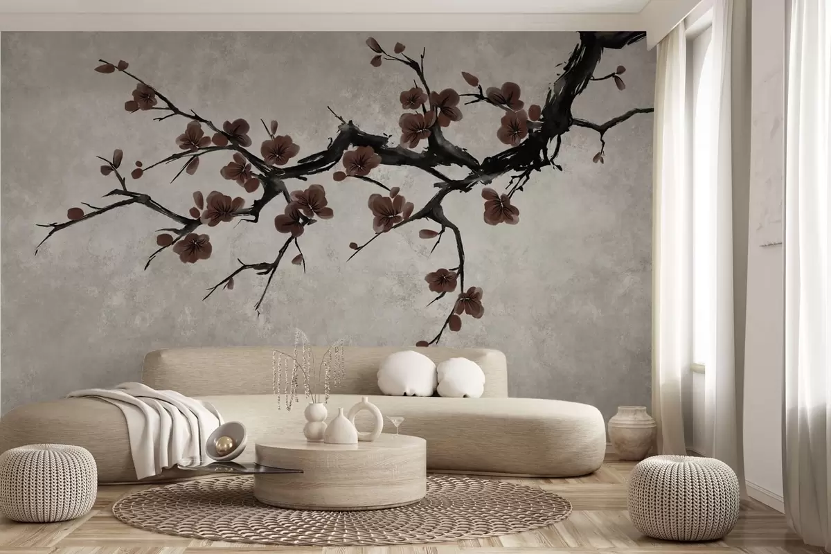 Stenske poslikave Vejica s temno rdečimi cvetovi na nevtralnem ozadju Št. w05425v1