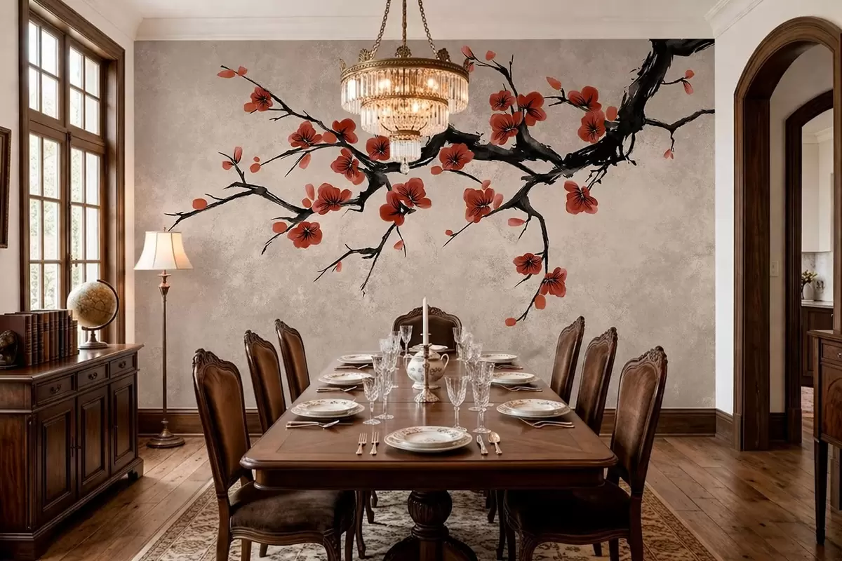 Stenske poslikave Cvetoča veja v vzhodnem slogu na bežem ozadju Št. w05425v4