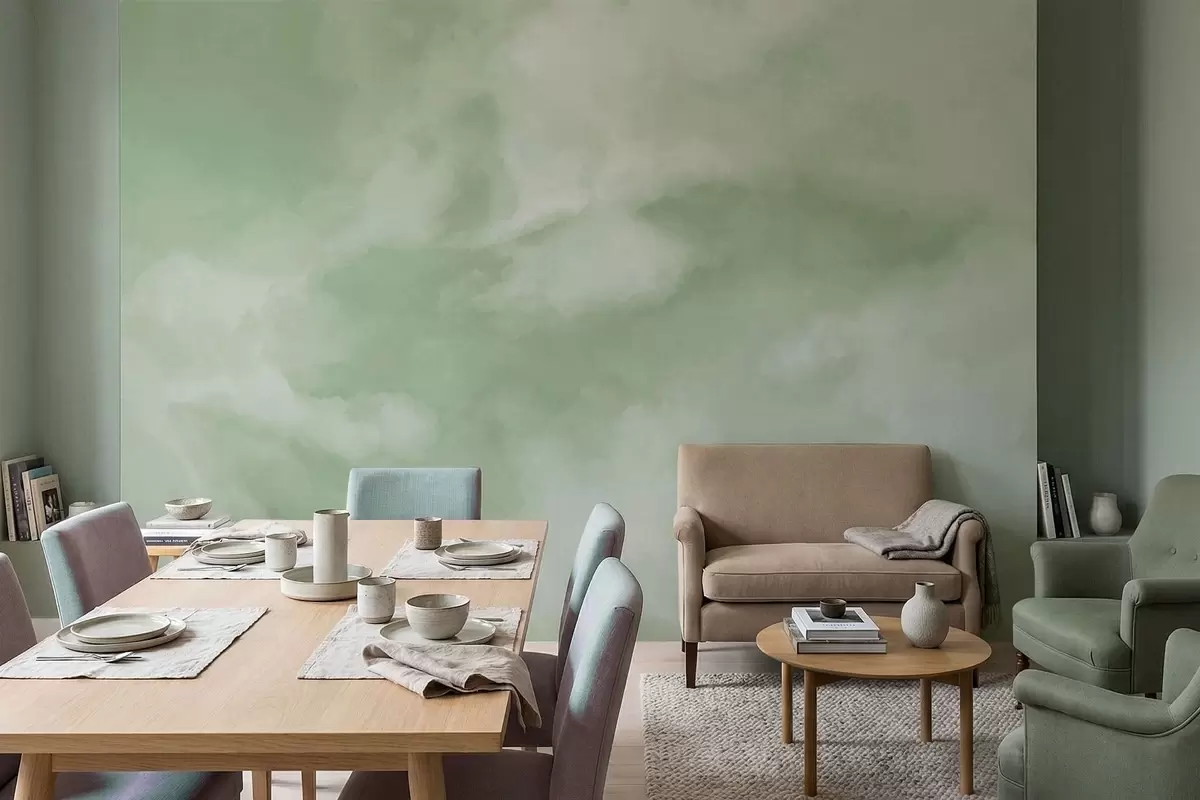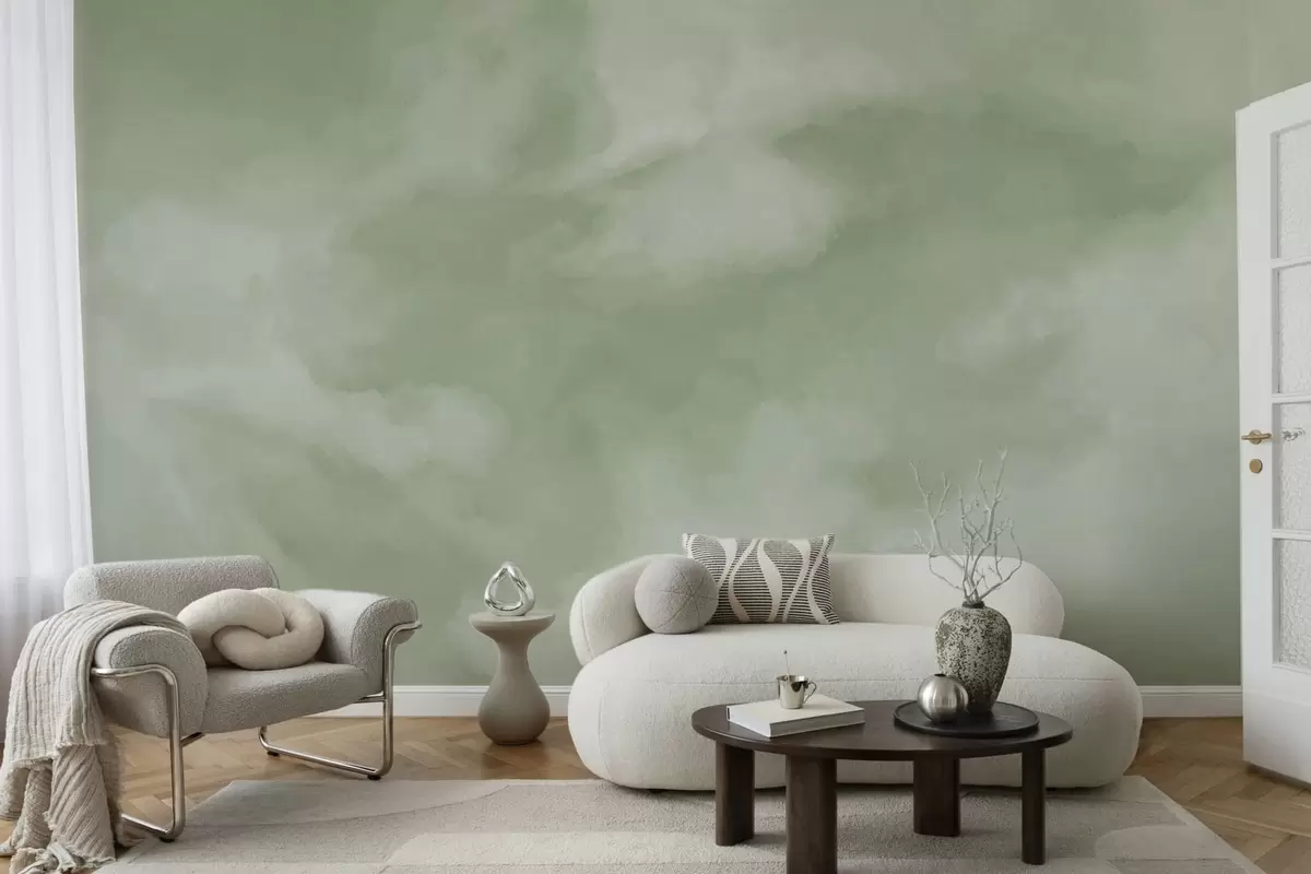 Stenske poslikave Mehko oblačno ozadje v nežnih zelenih odtenkih Št. w05426v2