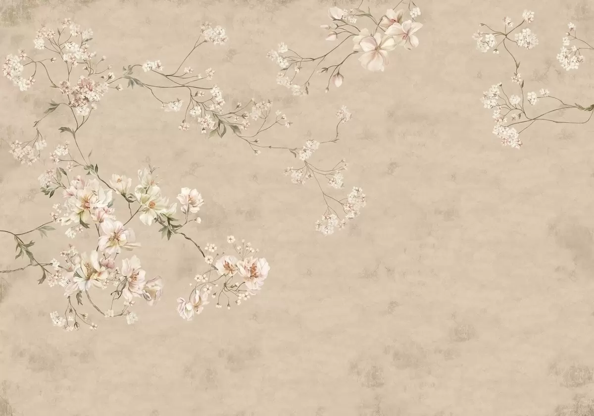 Stenske poslikave Cvetlične veje v slogu chinoiserie na toplem bežem ozadju Št. w05427v2