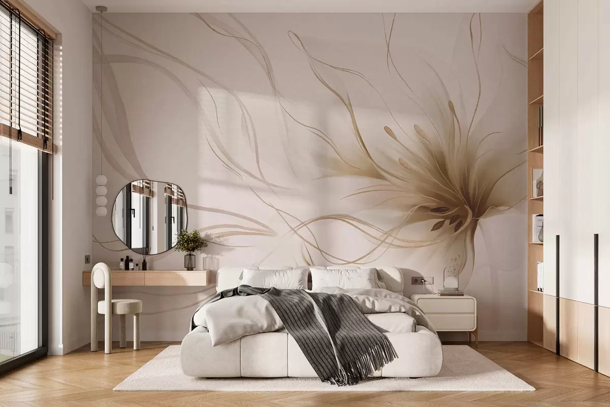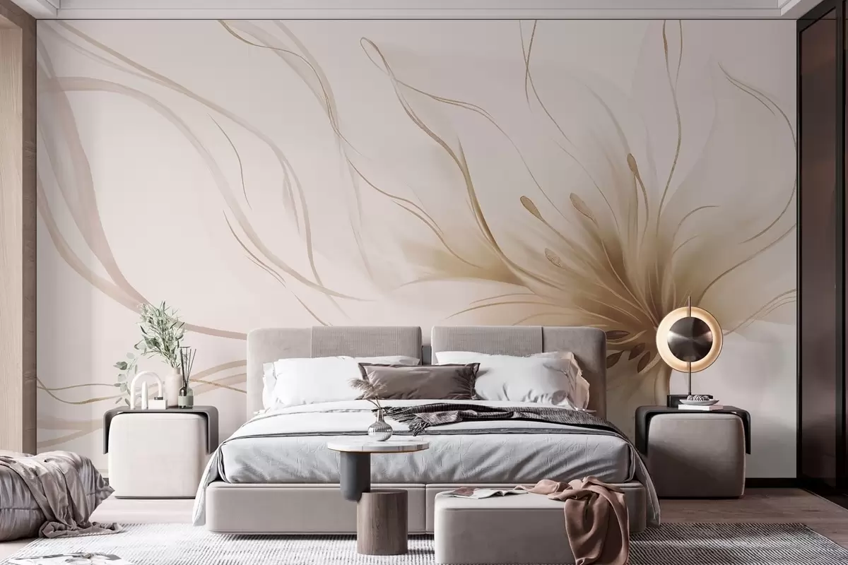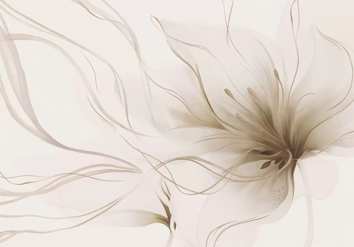 Stenske poslikave Abstraktni bež cvet z valovitimi linijami v slogu Fluid Art Št. w05428v2