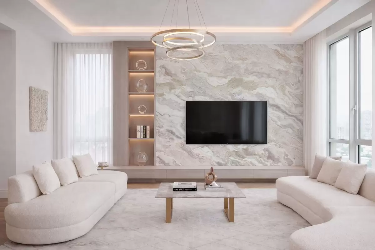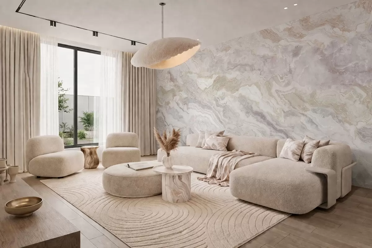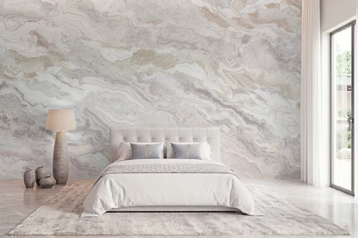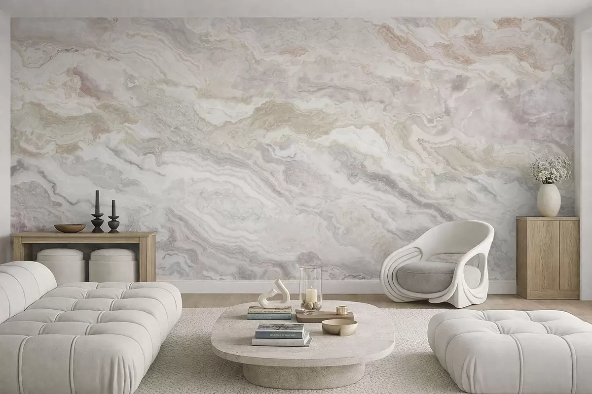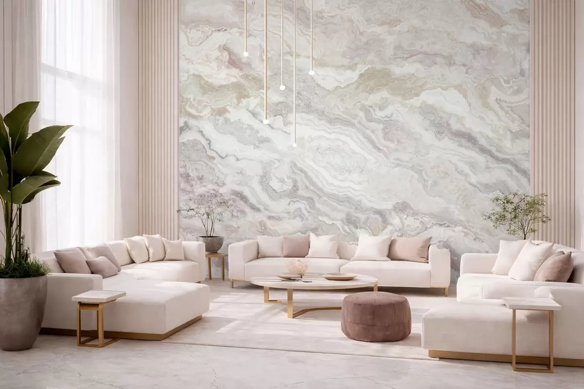 Stenske poslikave Svetel oniks z bež in sivimi valovitimi sloji Št. w05430