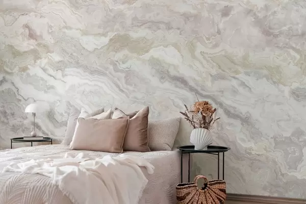 Stenske poslikave Svetel oniks z bež in sivimi valovitimi sloji Št. w05430