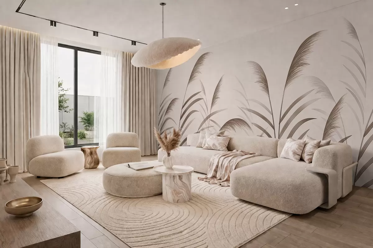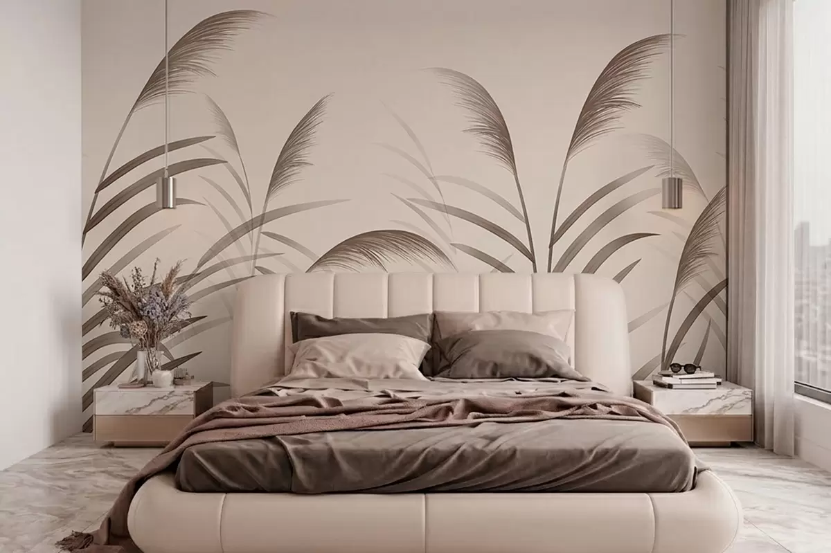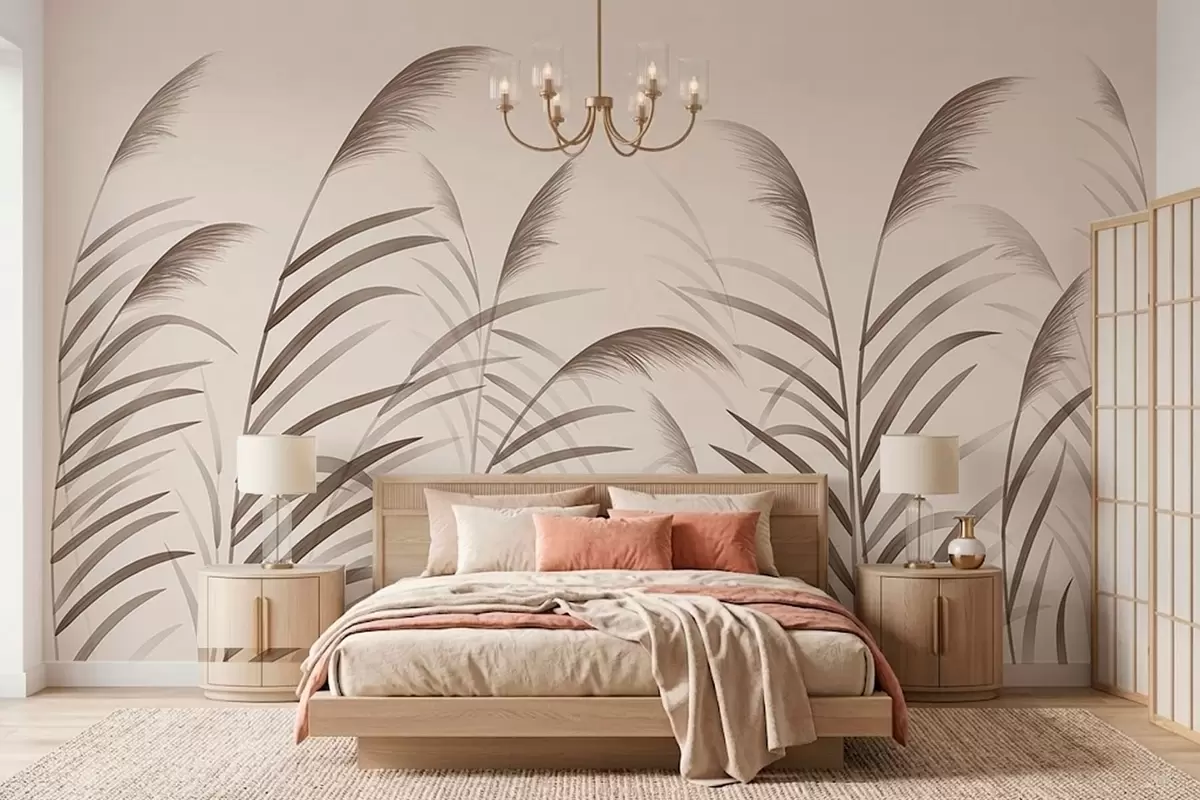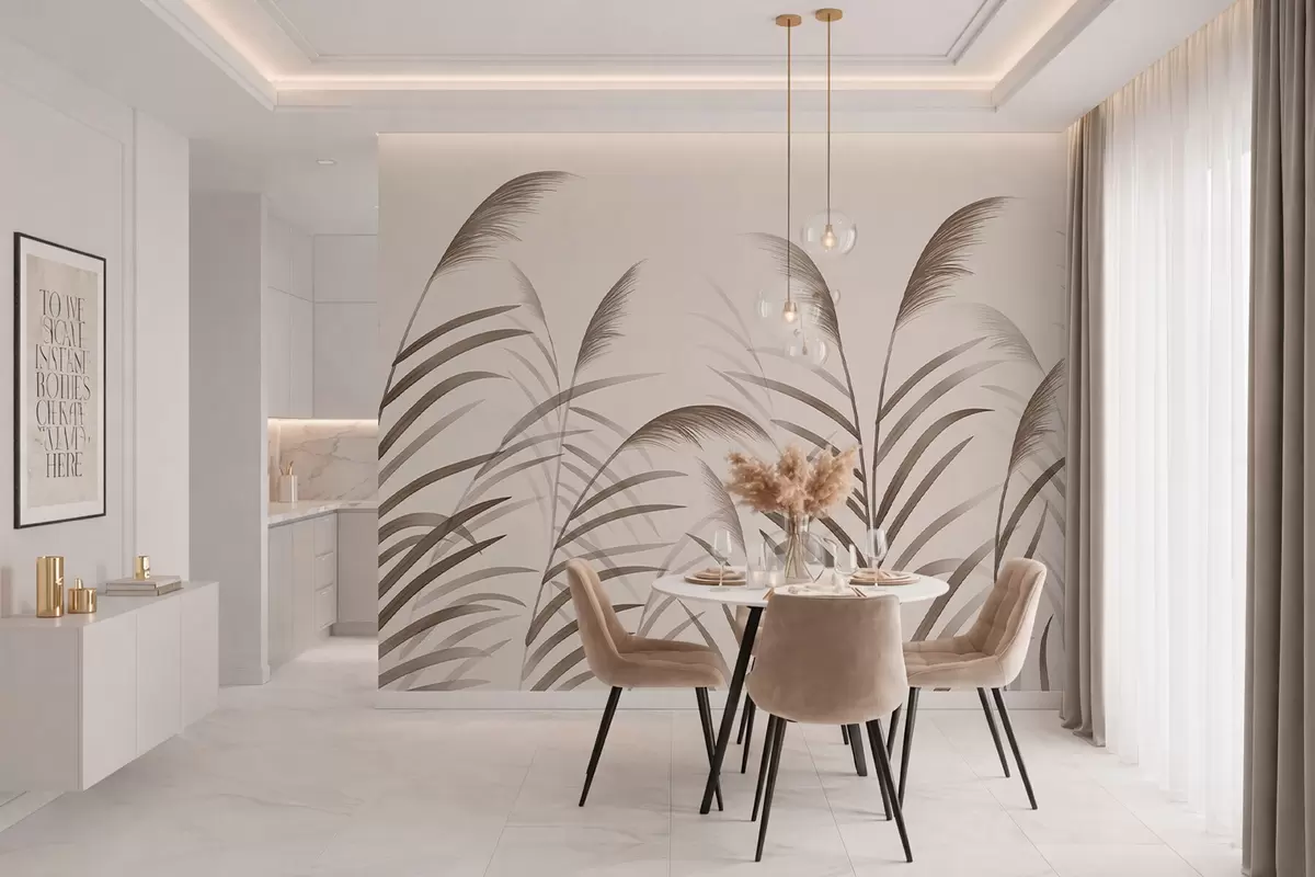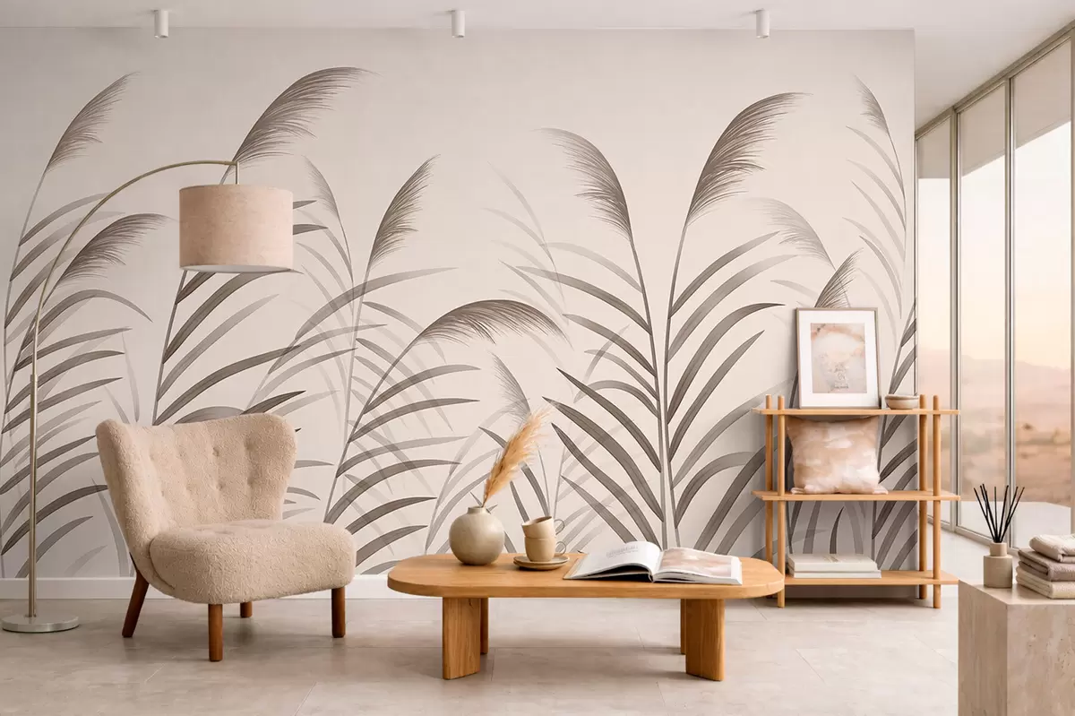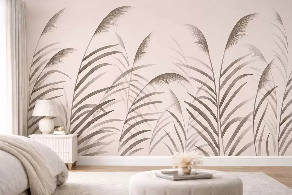 Stenske poslikave Minimalistične silhuete iz trstja v bežnih odtenkih Št. w05432