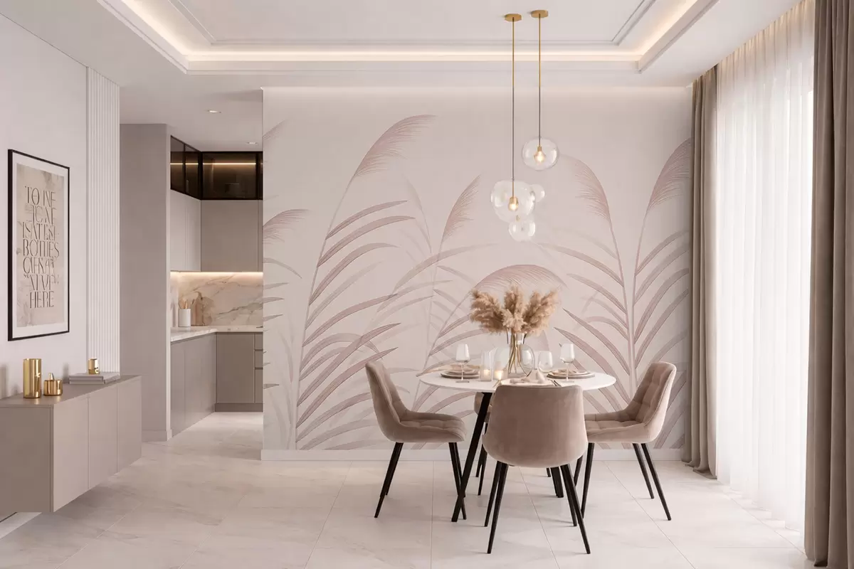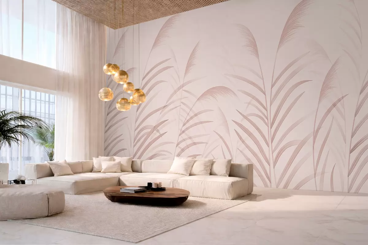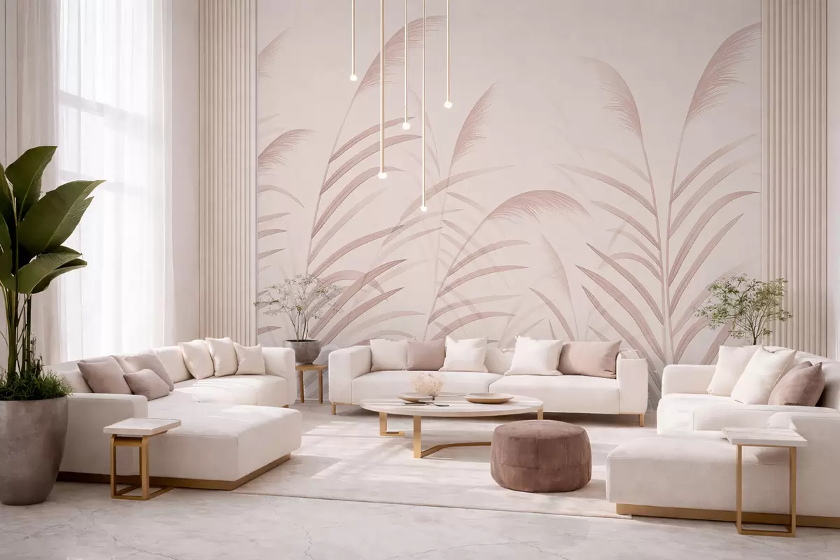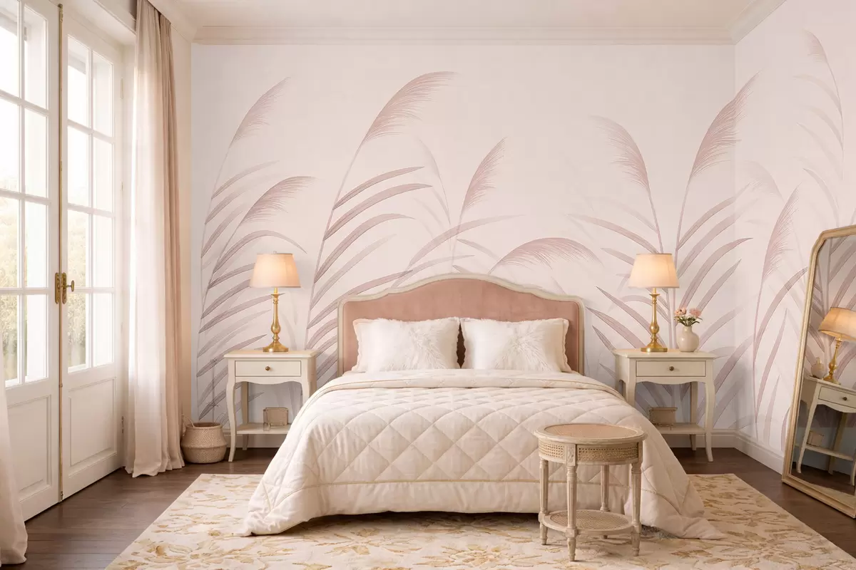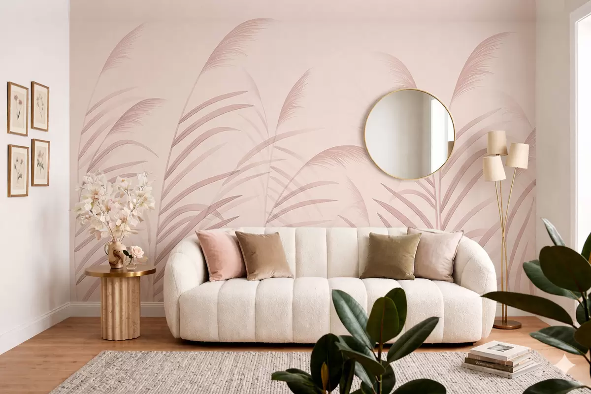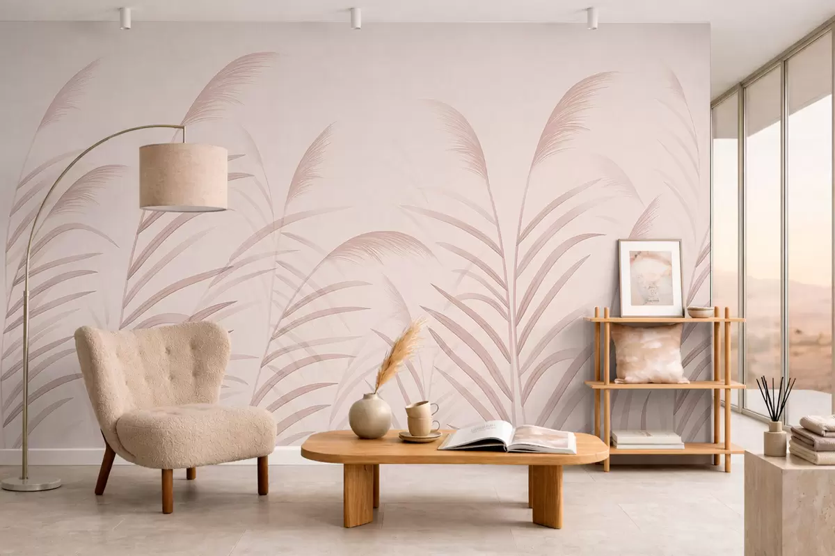 Stenske poslikave Minimalistične trave v nežnih rožnatih odtenkih Št. w05432v2