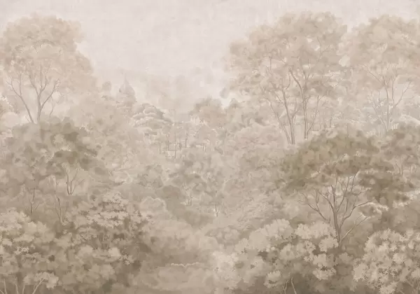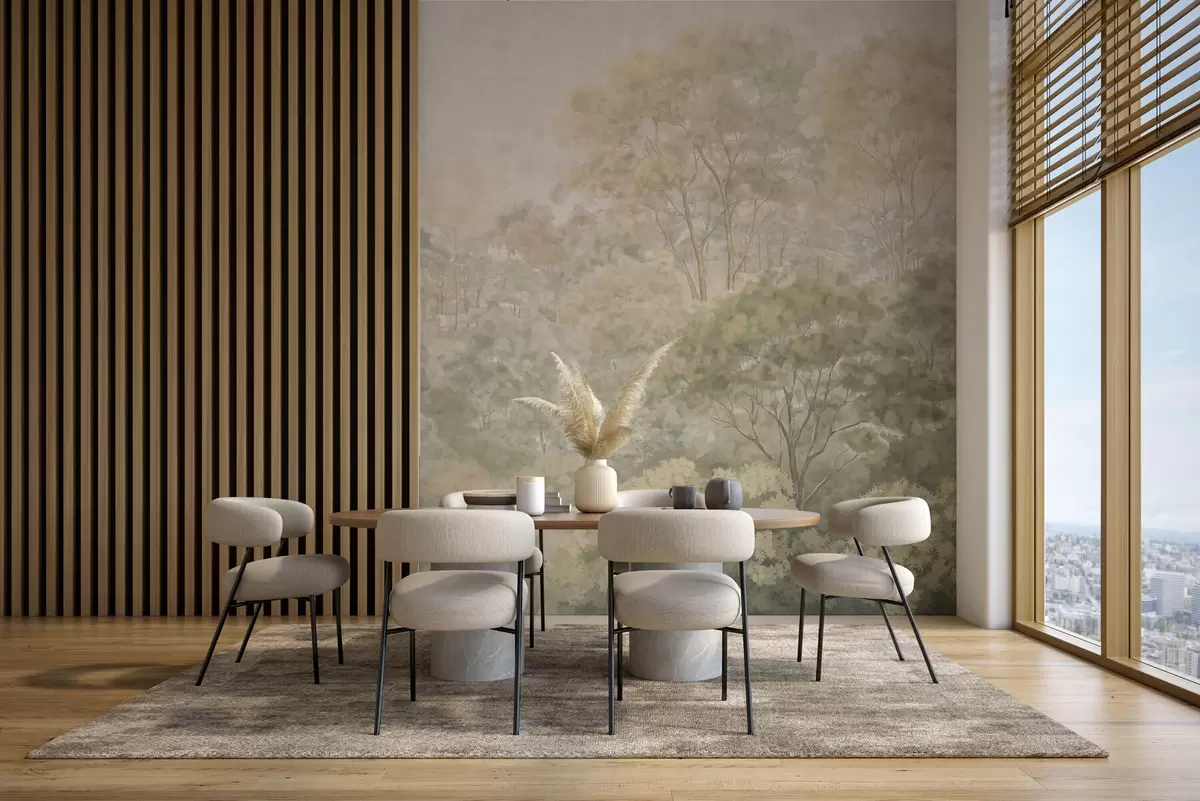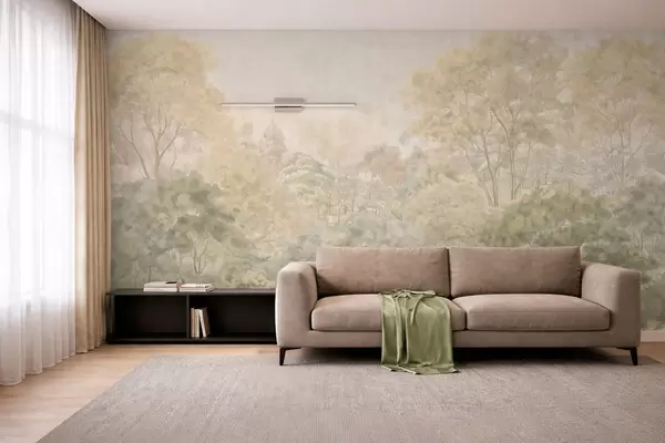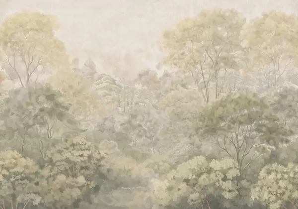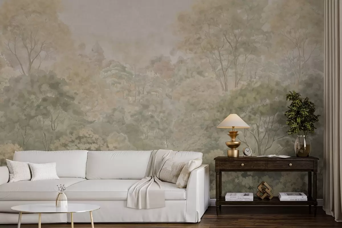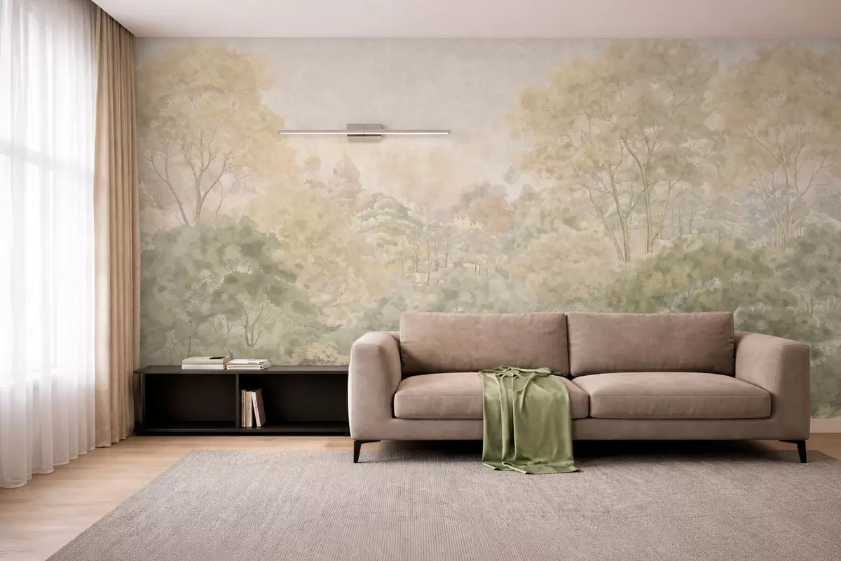 Stenske poslikave Klasična gozdna pokrajina v umirjenih zelenih odtenkih Št. w05433