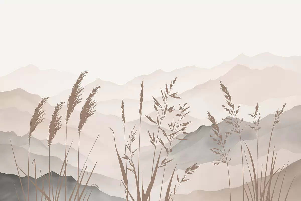 Stenske poslikave Silhuete trave na ozadju gora Št. w05501v1