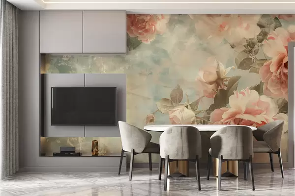 Stenske poslikave Zadimljeno ozadje z nežnimi cvetovi Št. w07941