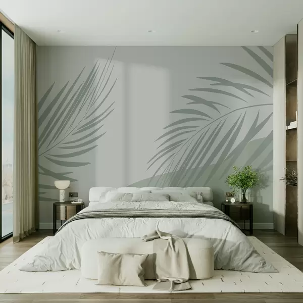 Stenske poslikave Tropski listi na svetlem ozadju Št. w08016