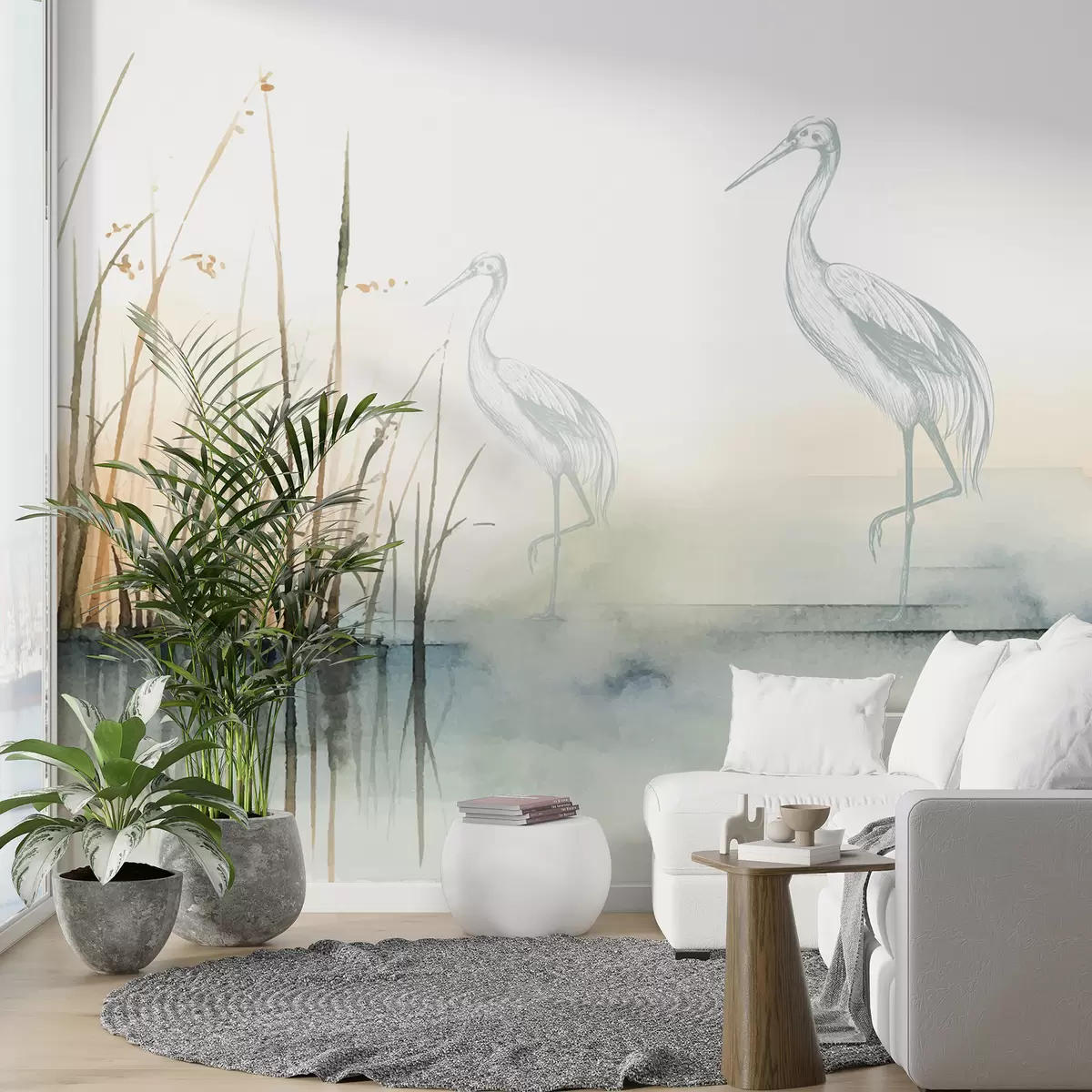 Stenske poslikave Akvarelne trske in čaplje Št. w08078