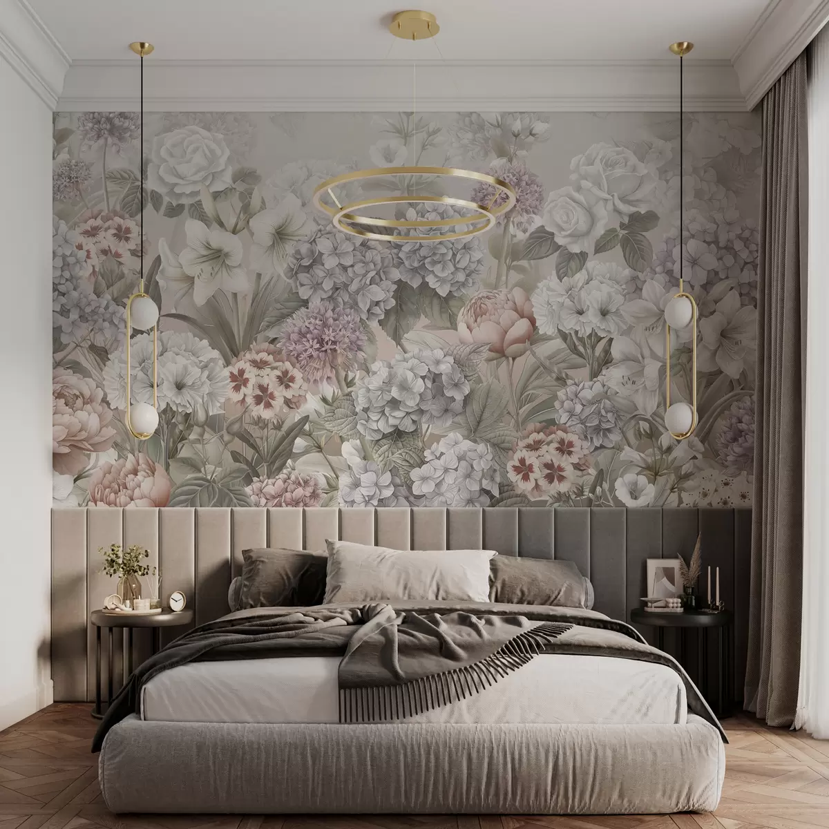 Stenske poslikave Čarobni poletni vrt v pastelnih barvah Št. w08140