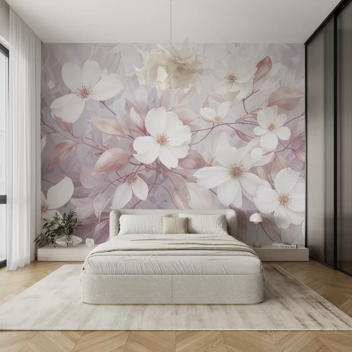 Stenske poslikave Nežni rožnati in beli cvetovi magnolije, ki cvetijo na mehkih, zamegljenih vejah na bledem ozadju Št. w08196