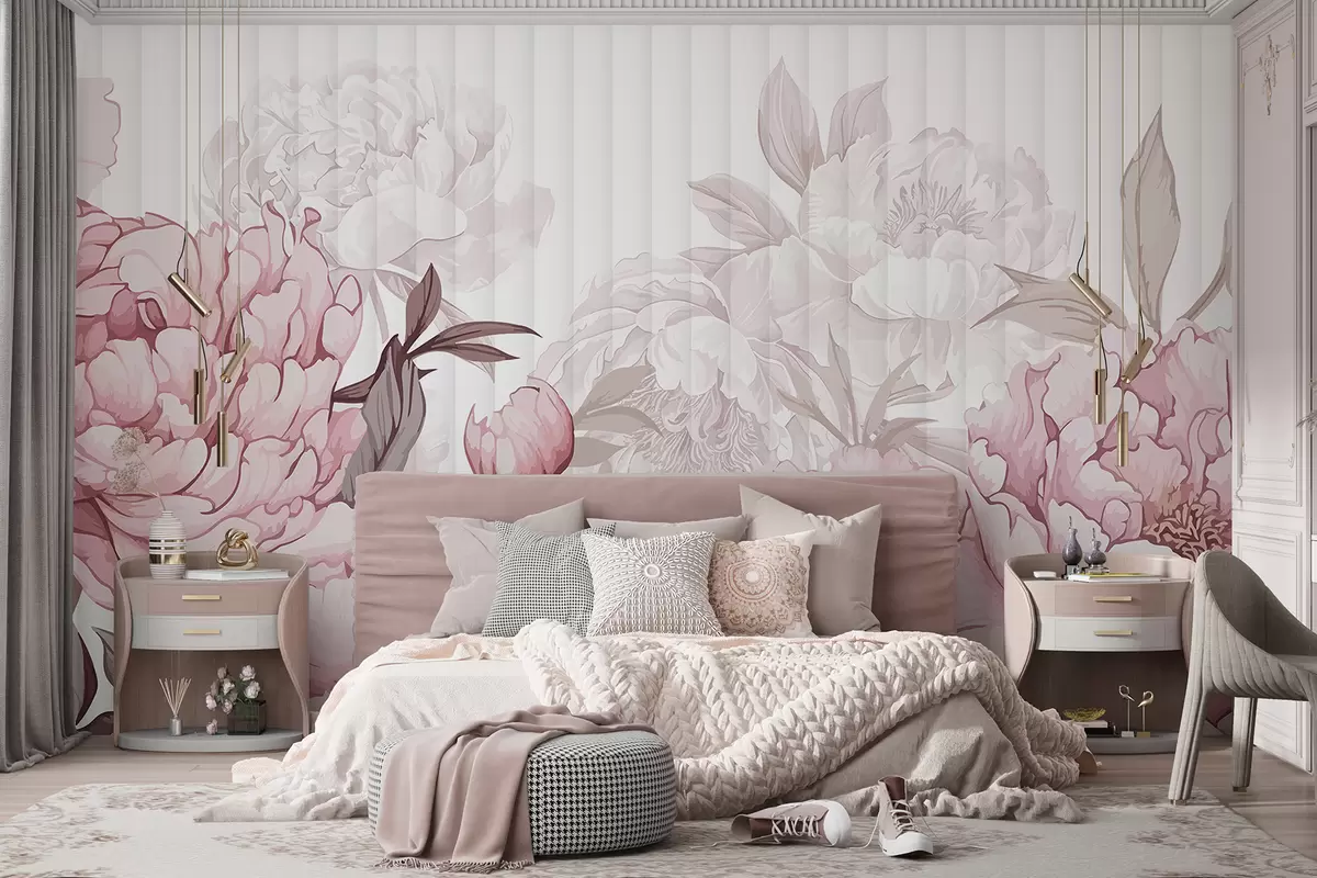 Stenske poslikave Pogled od blizu na velike, nežne rožnate in bele cvetove borovnic na mehkem, teksturiranem ozadju Št. w08255