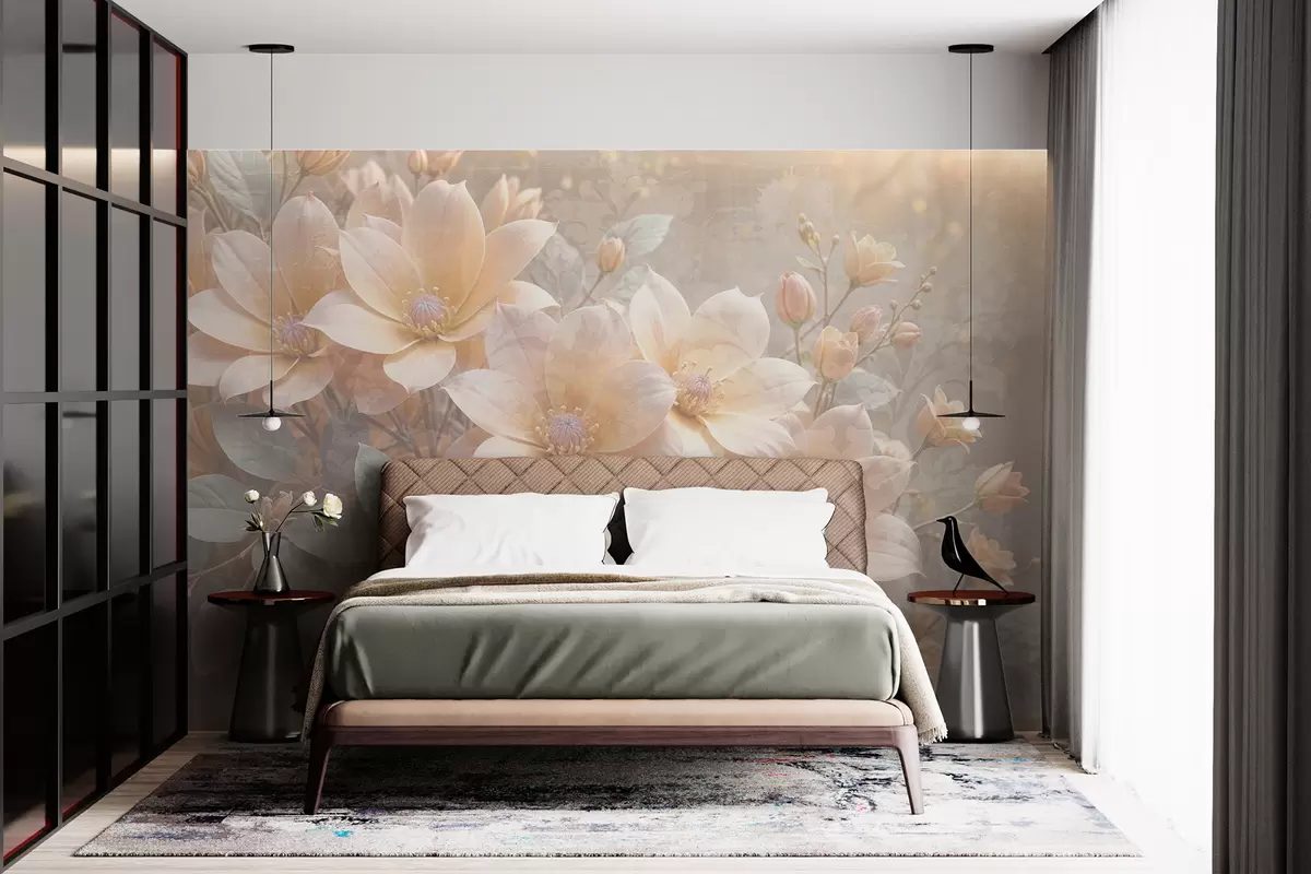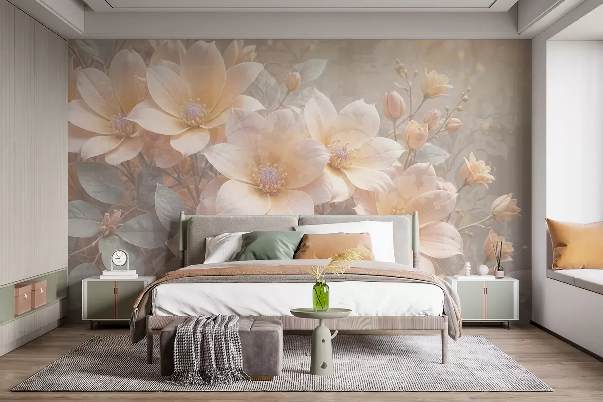 Stenske poslikave Pastelno obarvano cvetje z nežnimi cvetnimi lističi na zamegljenem teksturiranem ozadju , ki ustvarja mirno vzdušje Št. w08273