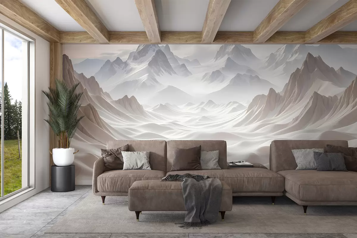 Stenske poslikave Zasneženi gorski vrhovi, ki se dvigajo iz meglene, eterične pokrajine s hribi in dolinami Št. w08313