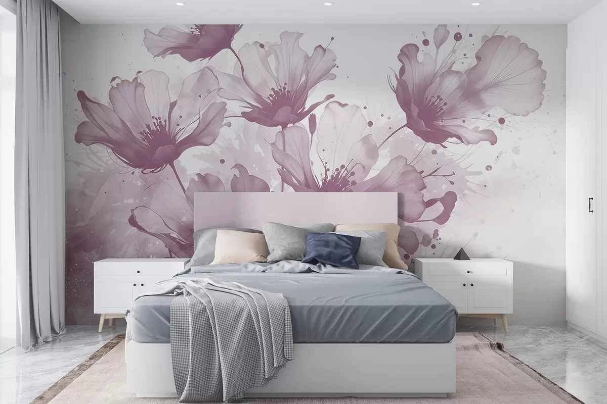 Stenske poslikave Nežno rožnato cvetje z mehkimi, zamegljenimi cvetnimi listi in akvarelnimi razpršili na svetlem ozadju Št. w08376v2