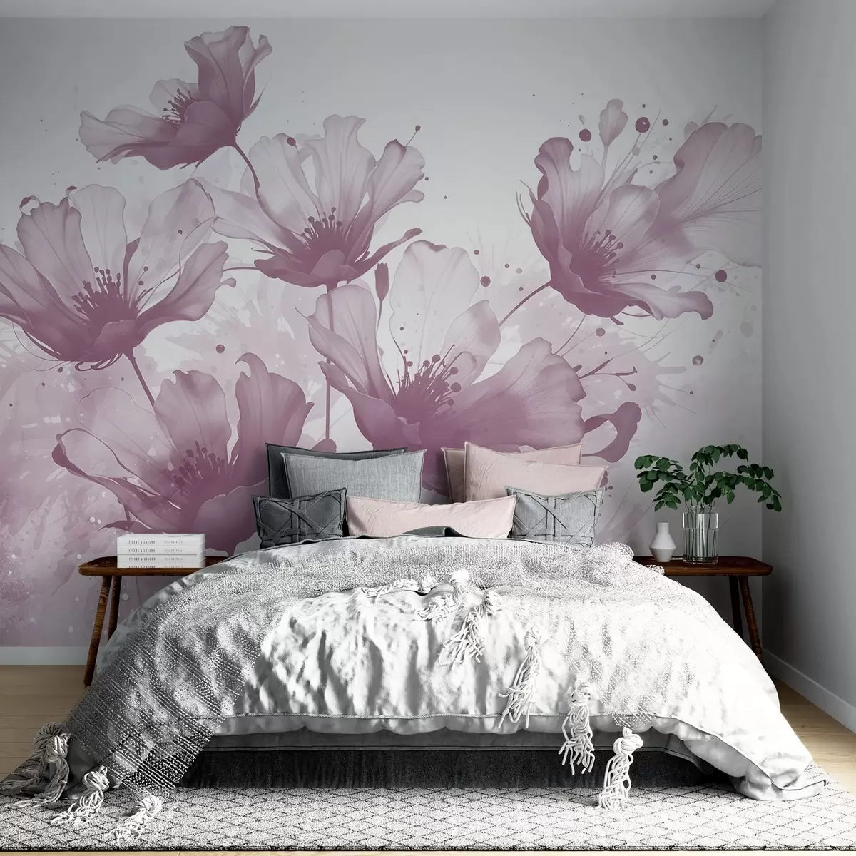 Stenske poslikave Nežno rožnato cvetje z mehkimi, zamegljenimi cvetnimi listi in akvarelnimi razpršili na svetlem ozadju Št. w08376v2