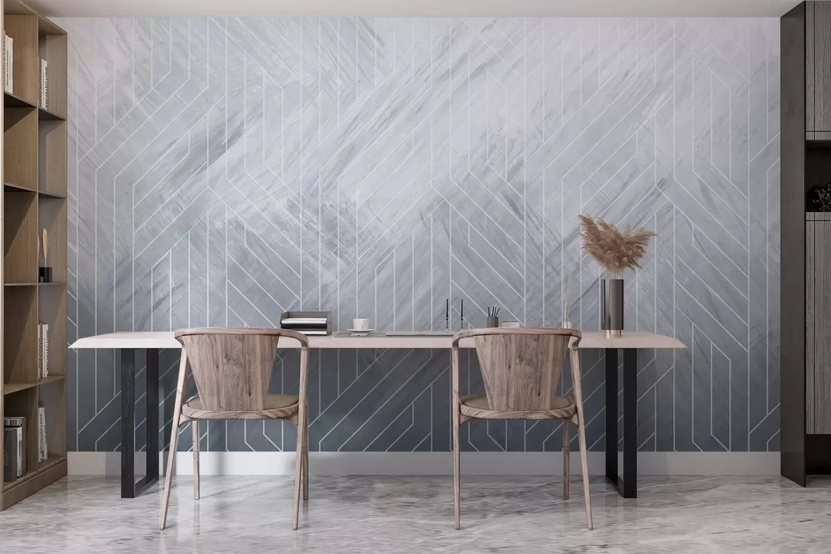 Stenske poslikave Geometrično abstraktno ozadje z diagonalnimi črtami in gradientnim učinkom v modrih odtenkih Št. w08433
