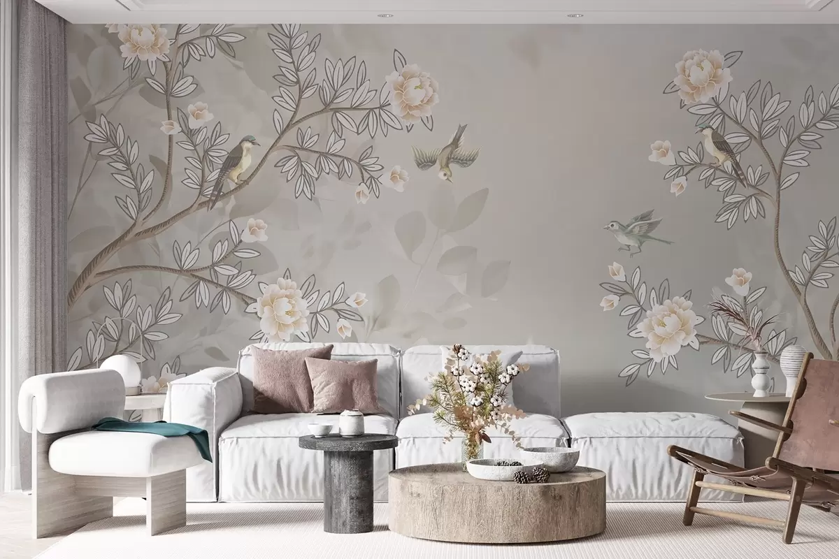 Stenske poslikave Veje z vrtnicami in letečimi pticami v svetlih tonih Št. w08493