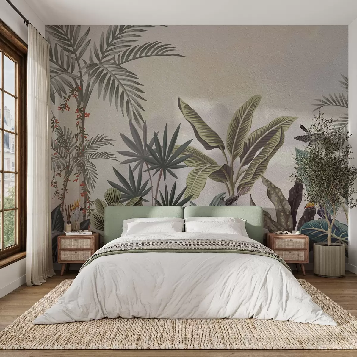 Stenske poslikave Tropska džungla s palmami in pisanimi pticami Št. w08496