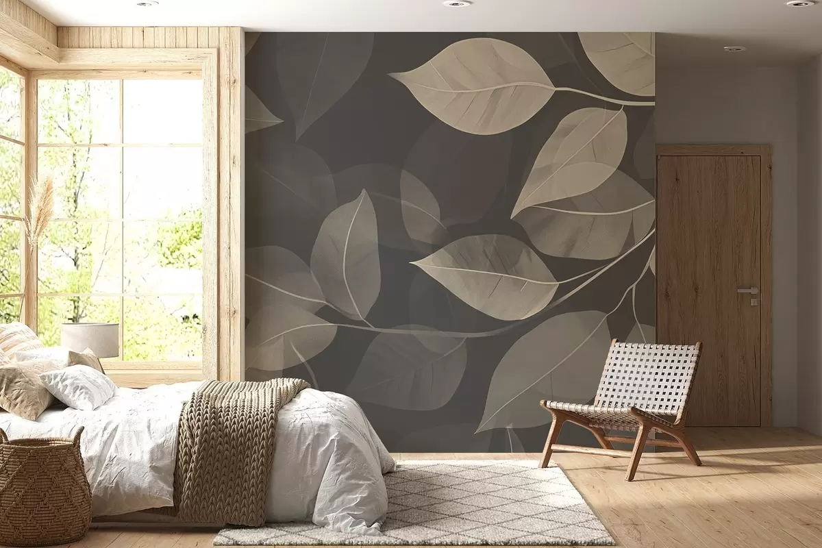 Stenske poslikave Veje listov v modrih in sivih tonih Št. w08502v1