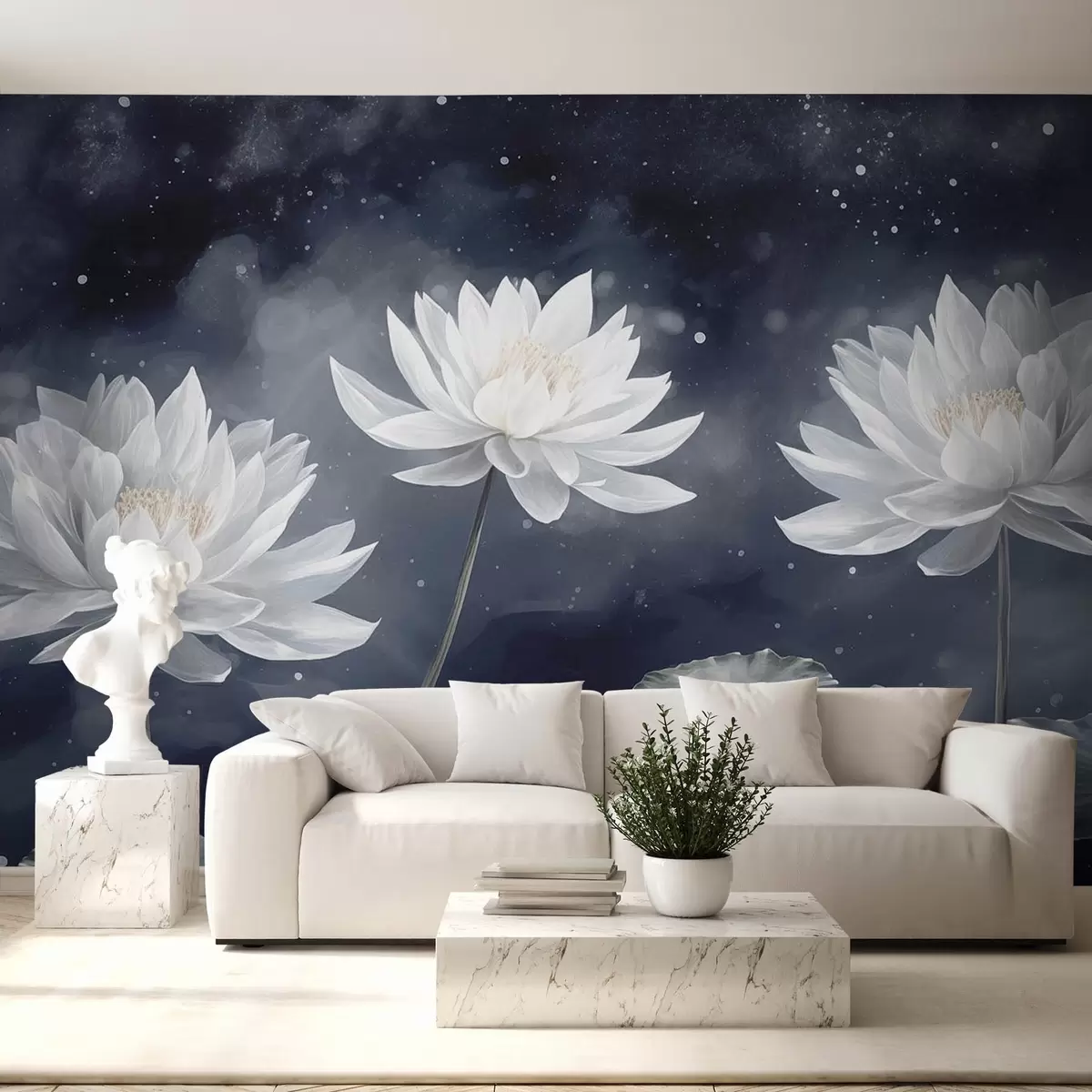 Stenske poslikave Trije lotosovi cvetovi na temnem ozadju Št. w08506