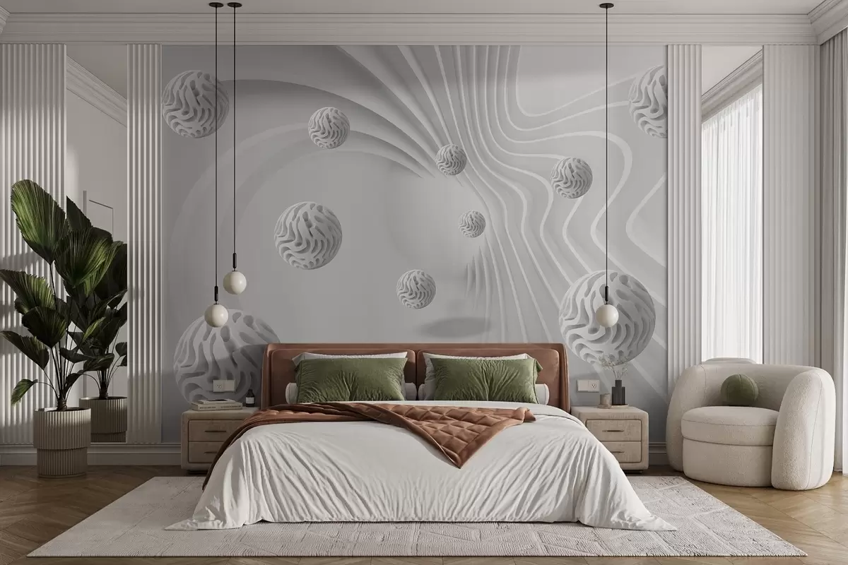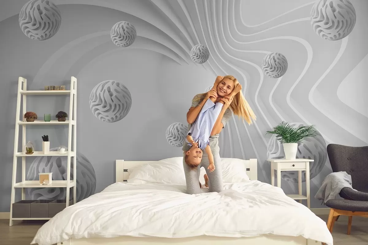 Stenske poslikave 3D siva abstrakcija s kroglami in globinskim učinkom Št. w08553